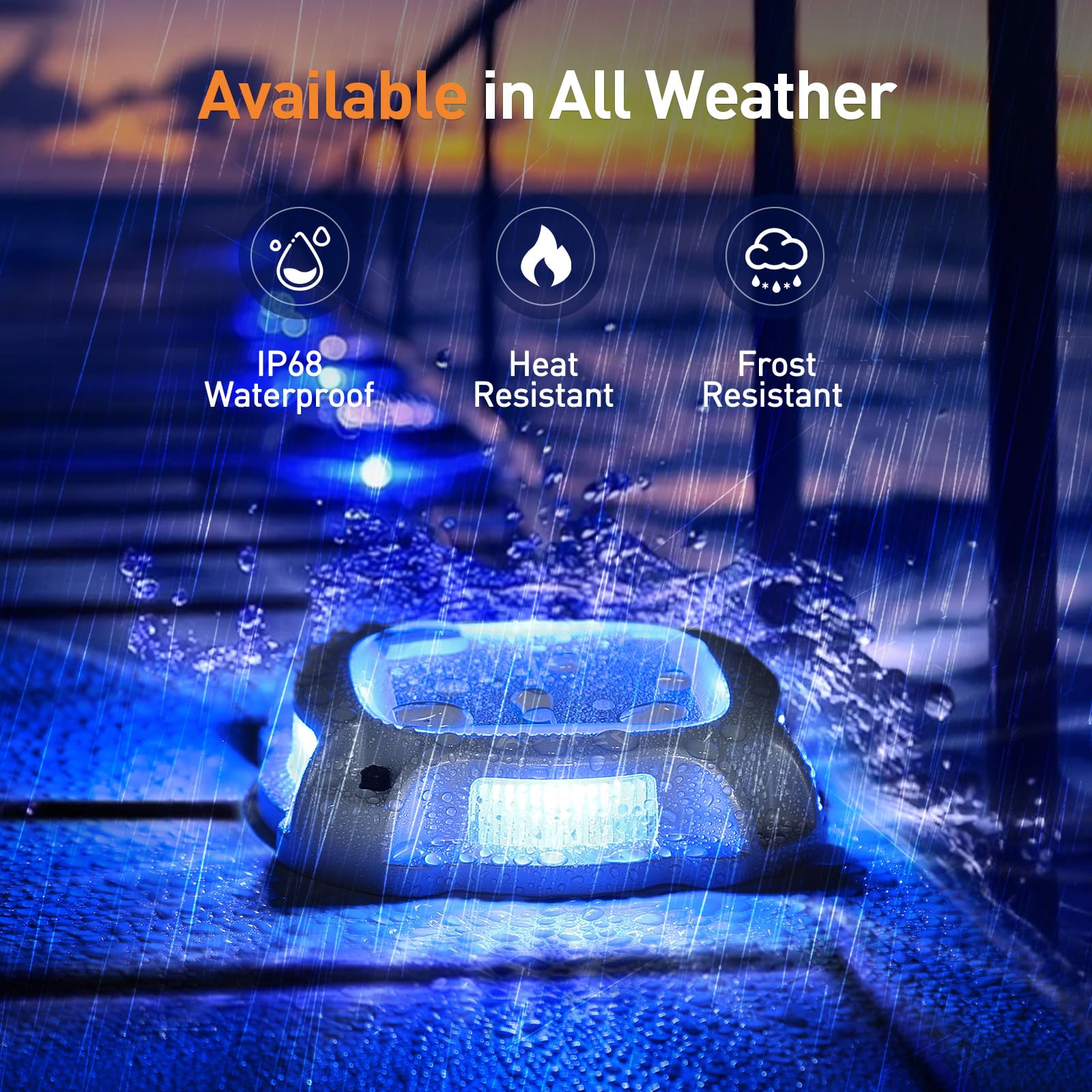 【Heavy Duty & Aluminum Alloy】Made of strong and sturdy metal, minimize your concerns about these deck lights's durability. Premium aluminum alloy shell provides excellent pressue resistance, these dock lights able to withstand up to 3 Tons pressure from most of lawnmower, vehicle, trucks and boats