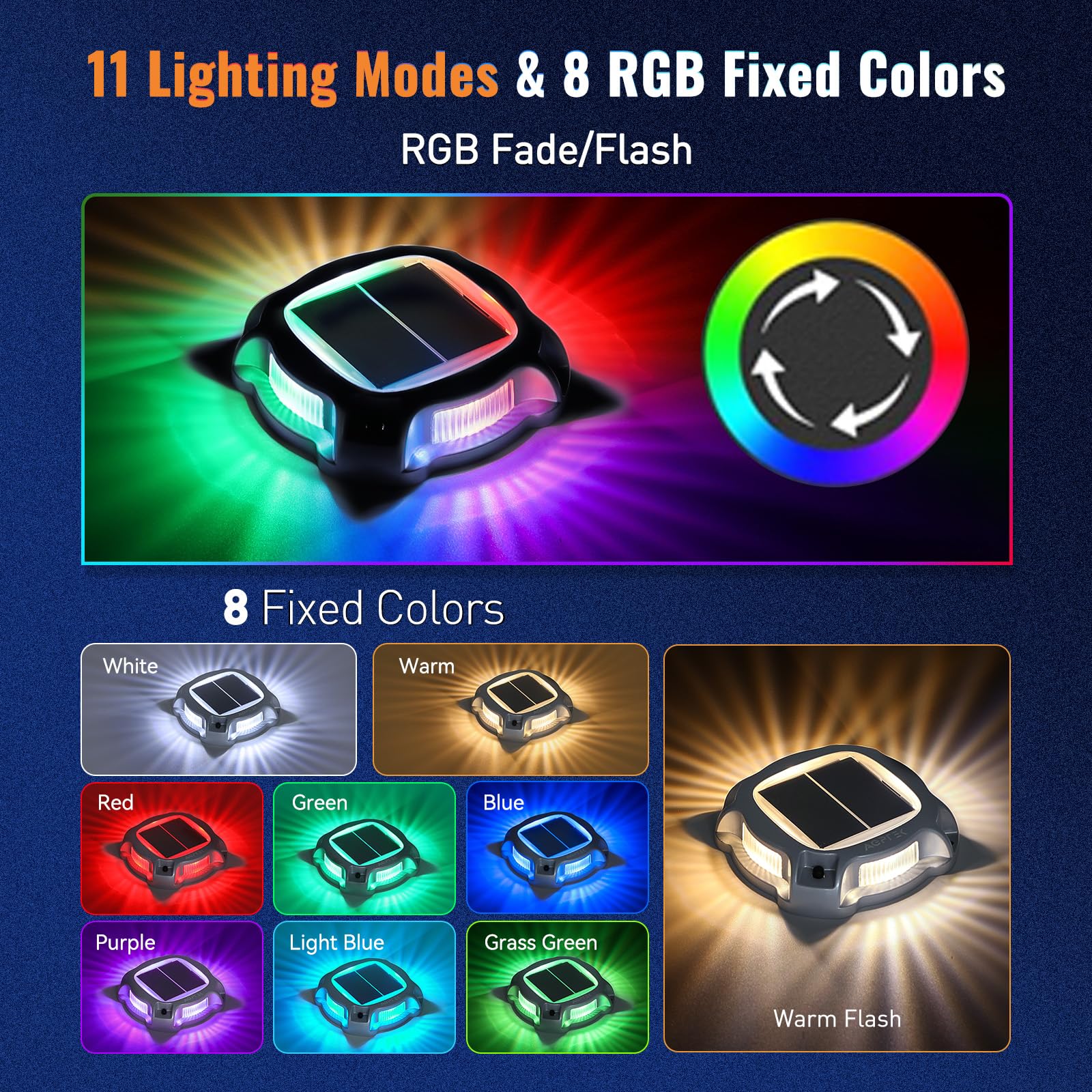 【Multiple Colors In One & 11 Lighting Mode】Rich RGB color option and 11 lighting modes meet your daily and holiday decoration needs. Not only can choose to use 8 specific single color mode or 2 RGB color changing settings (RGB Fade & RGB Flash), also support use the warm flashing mode. A practical option to create ambience for your house