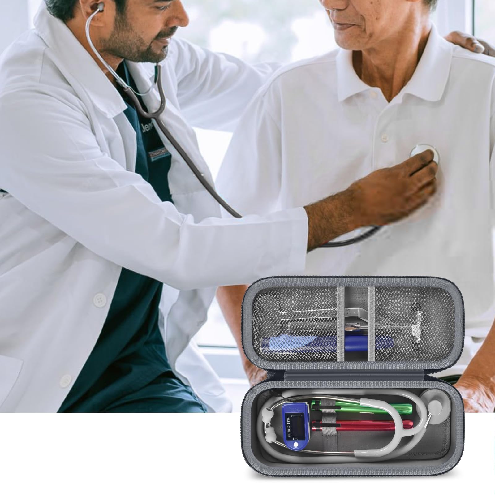 Stethoscope Case of Comprehensive Protection: This case is made of the hard EVA materials, the anti-static, shockproof layer and fluffy fabric inner layer fully padded and effectively absorb impacts, compact fully protect the stethoscope, neurological reflex hammer, medical thermometer, pulse oximeters, and other Littman stethoscope accessories. Prevent shaking and loss; avoid stethoscope breaking.