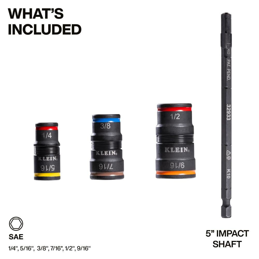 The 7-in-1 Impact Flip Socket Set provides 6 nut driver sizes plus a bit holding feature all within one compact tool. The versatility provided allows for convenient swapping between the common nut driving sizes and quickly attaches to an impact driver or our 1/4-Inch quick-connect handles (handles not included). Every component is impact-rated, making it an essential tool for the toughest driving applications. For more than 160 years, Klein Tools has manufactured premium-quality, professional-grade hand tools that deliver the performance, durability and precision needed to get the job done right. Our family of engineers, workers and craftsman continue to put six generations of expertise into every tool we create by using only the highest quality materials, superior workmanship, and keeping manufacturing as close to home as we can. Klein isn't just the name of our company, it's also our family name. And since we're an American company that's family-owned and family-run, you know you can count on us to be here tomorrow. Klein Tools doesn't just make great products, we make great products that stand up to the demands of the professionals who use them every day ... Since 1857.