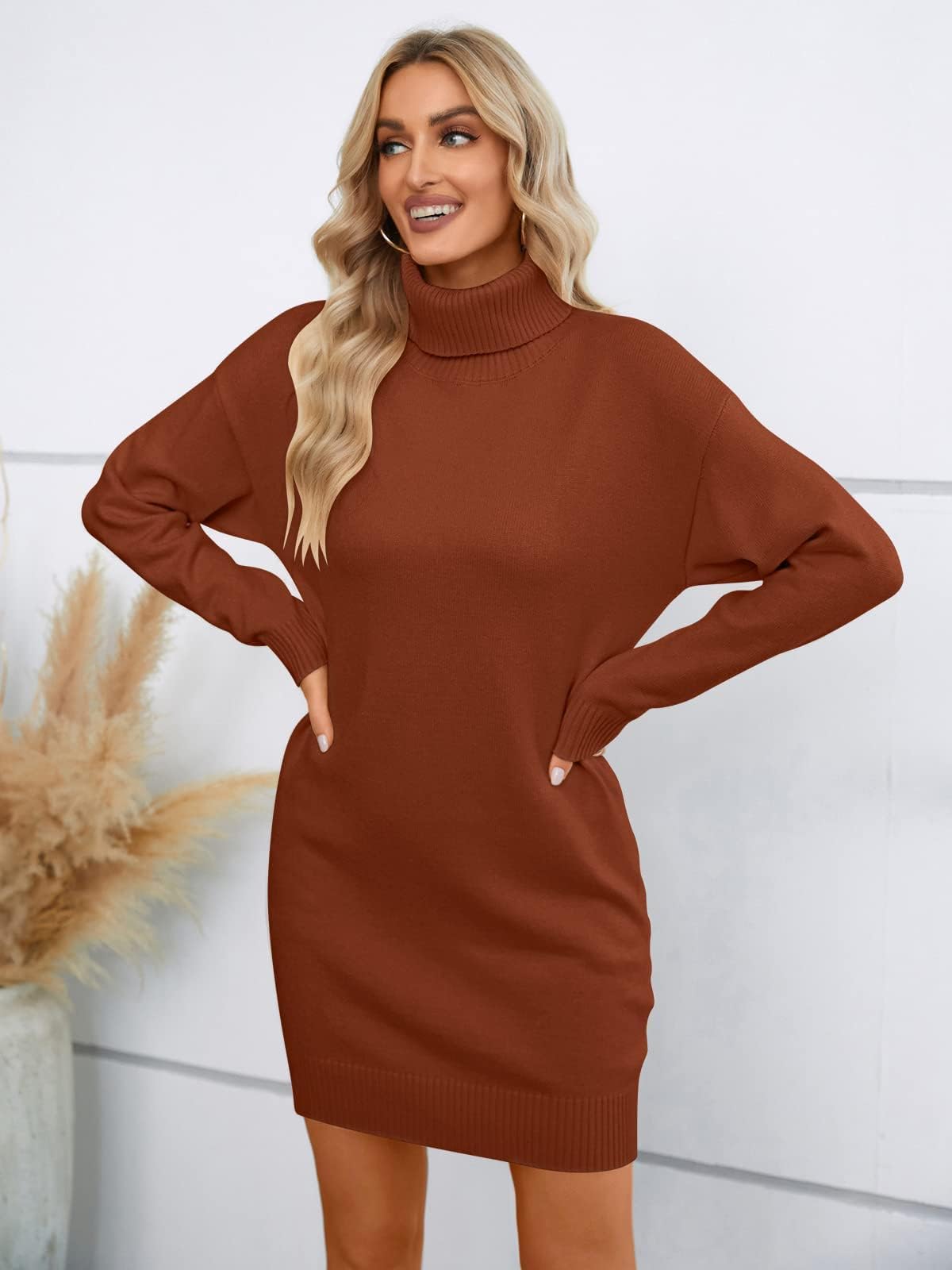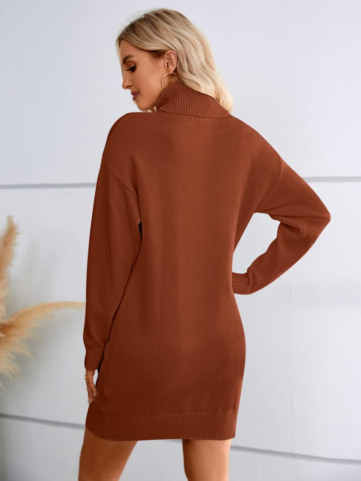 Features: Sweater Dresses, Knitted, Turtleneck, Relaxed fit, Short dress, Above Knee Length, Drop shoulder design, Ribbed at cuffs and hem. Ideal companion for fashionable outfits.