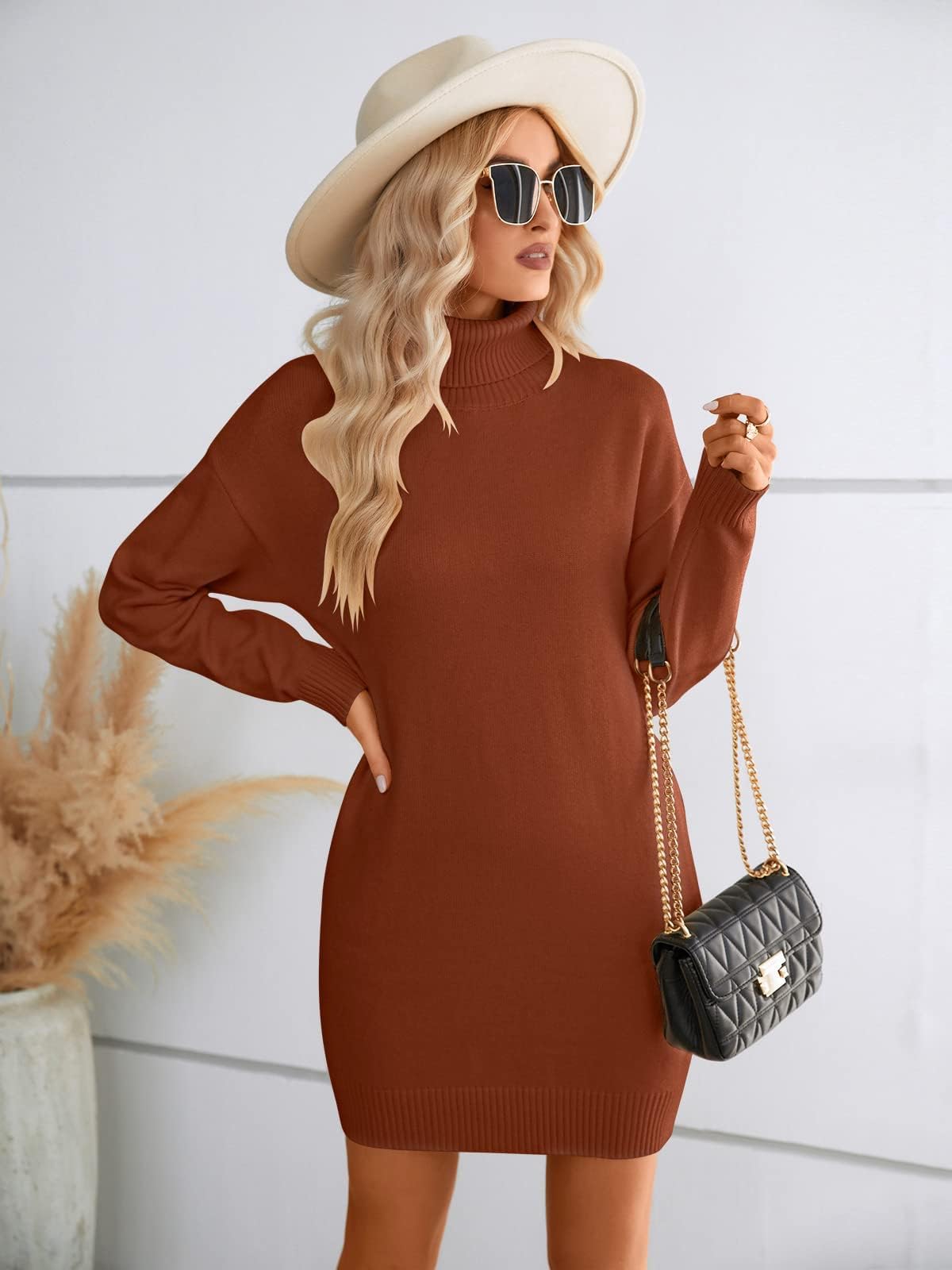 Women pullover sweater dress, elegant sweater material, high quality knitted fabric, so warm and comfortable and to wear. Unique turtleneck design reflect your personal taste, loosely Straight Cut, long Sleeves looks very elegant.