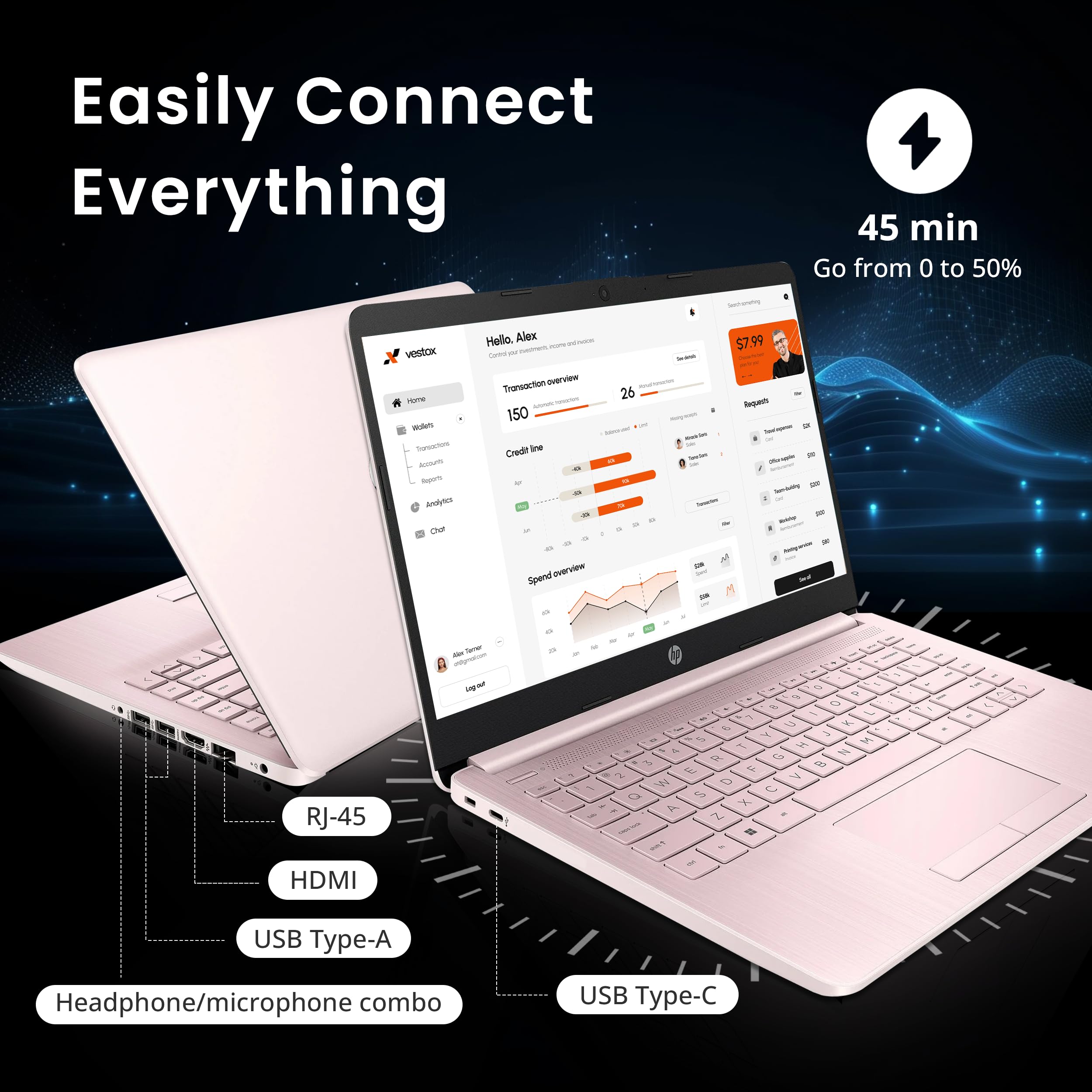 【14" HD Display】Enjoy participating in more relaxing activities while immersing yourself in the amazing clarity and brightness of this display, which is certain to enhance your experiences in particular.【Intel UHD Graphics】Experience reliable graphics performance, delivering smooth visuals for everyday computing tasks and multimedia consumption on our laptops.【HP True Vision HD Camera】Stay connected with the built-in webcam for clear video calls and snapshots.