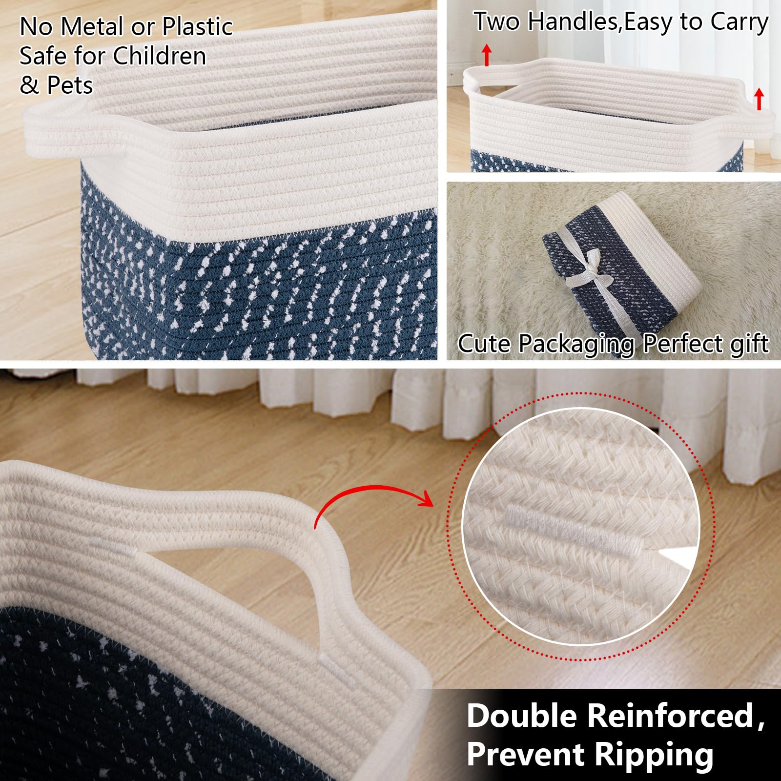 High Quality Cotton Rope Woven: Woven cotton thread is very soft and don't damage your floors and furniture. Seamless design, not easy to tear,More firm than rattan and plastic materials. Our storage basket has no harsh chemiacls added, and the cotton rope basket is safe for kids, elders and pets. Firm enough and stylish enough to go anywhere in the home