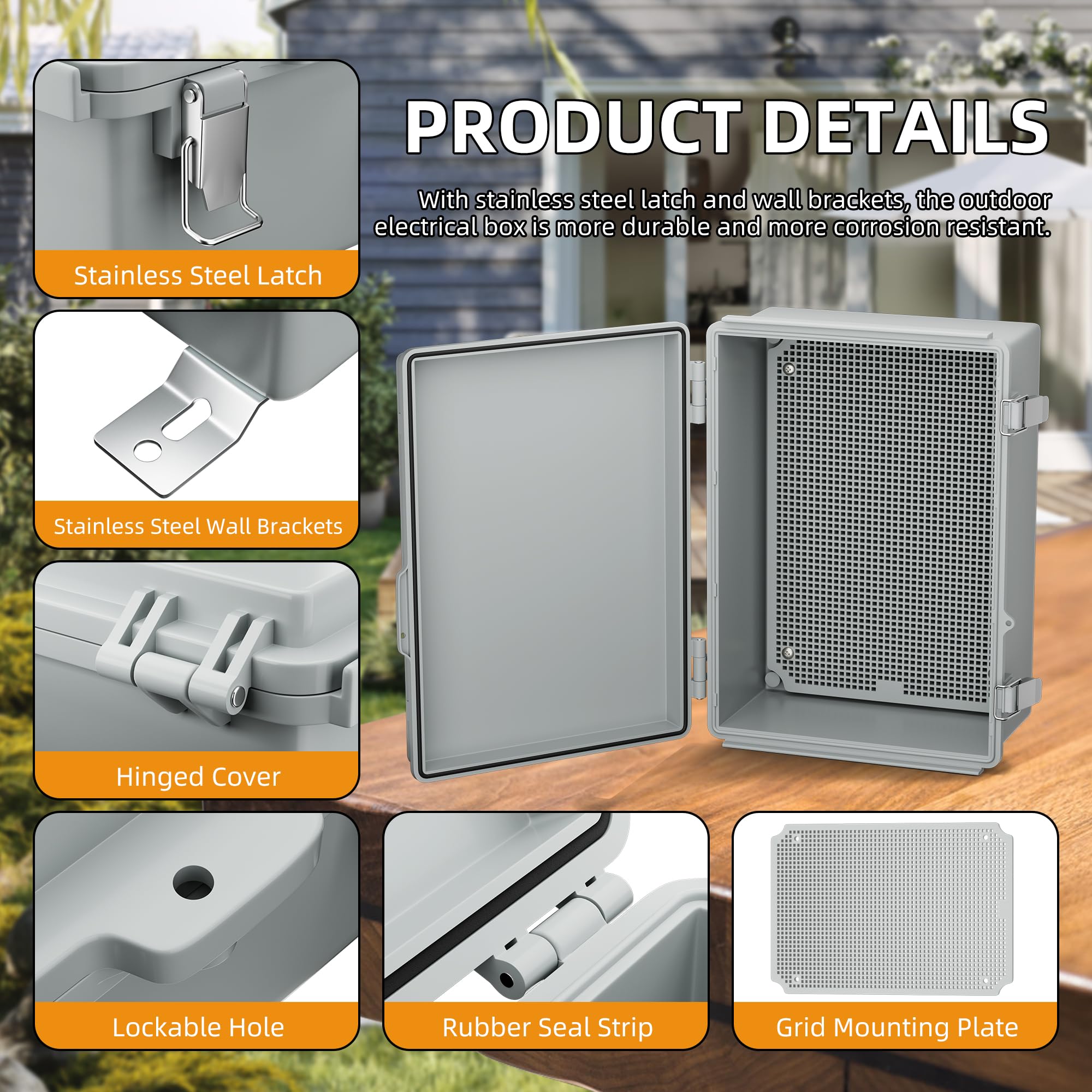 【Easy to Use】 This Weatherproof Electrical Box Plastic contains grid plate and screws, It's easy to install devices in this outdoor electrical box. The gray weather proof box and plate inside are both made of durable ABS Plastic.