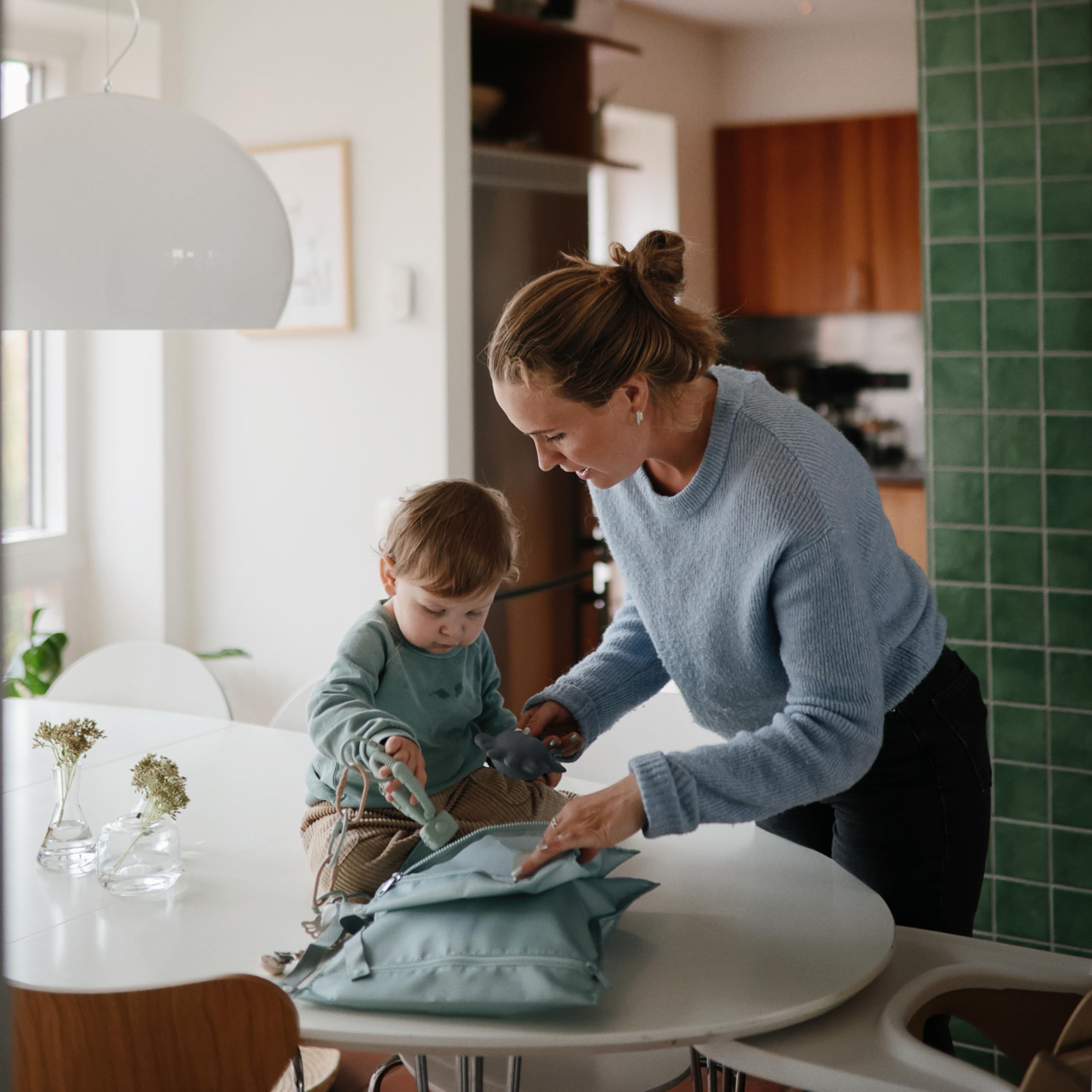 Comfort on the Go: Featuring a zipper closure and machine washable, water resistant material, mushie wet bags are designed to help tackle messy situations on the go. The handles include a snap closure to easily hang or attach to a stroller.
