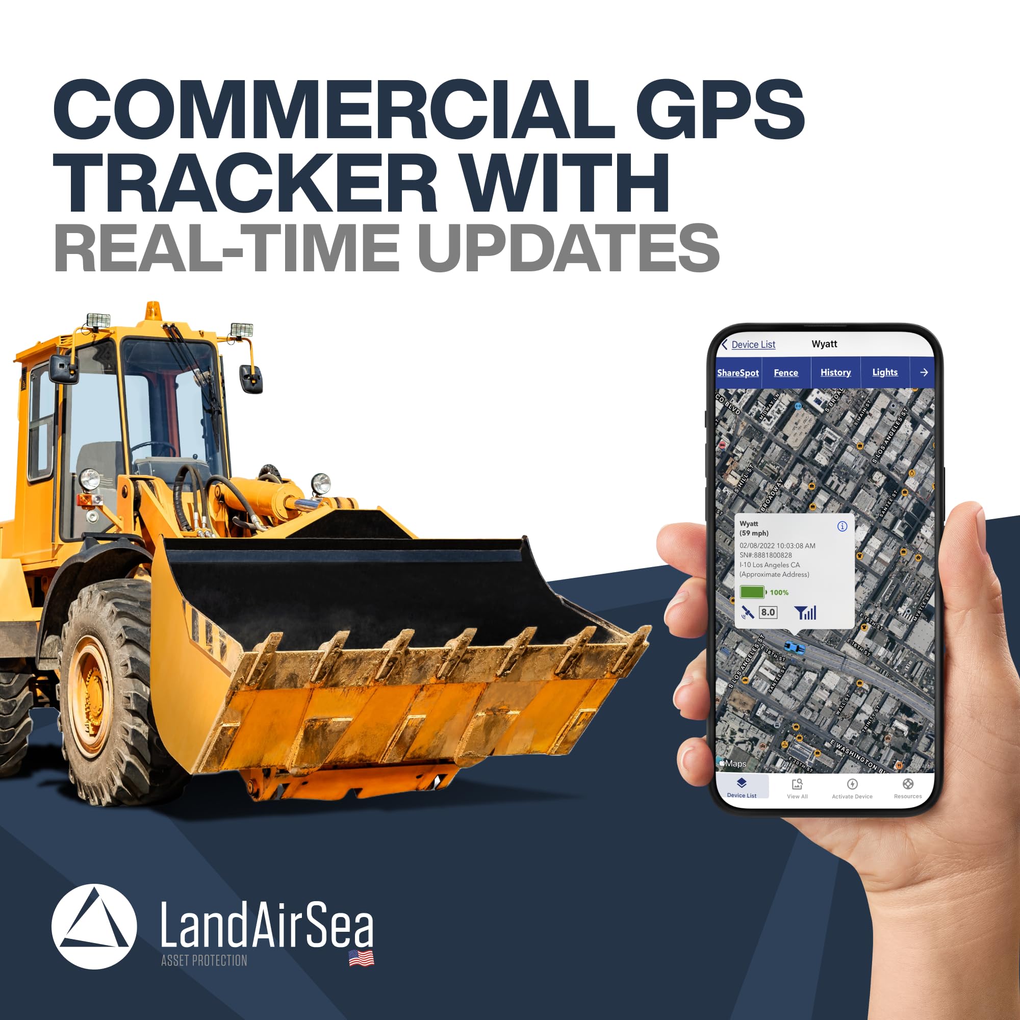 [LIFETIME WARRANTY] Durable and compact this premium IP67-rated waterproof GPS tracker is built to last. LandAirSea, a USA-based company and pioneer in GPS tracking offers a unconditional lifetime warranty covers any manufacturing defects in the device encountered during normal use. Made in the USA from Domestic & Imported Parts. (Optional Hardwire Kit for continuous run time is available.)