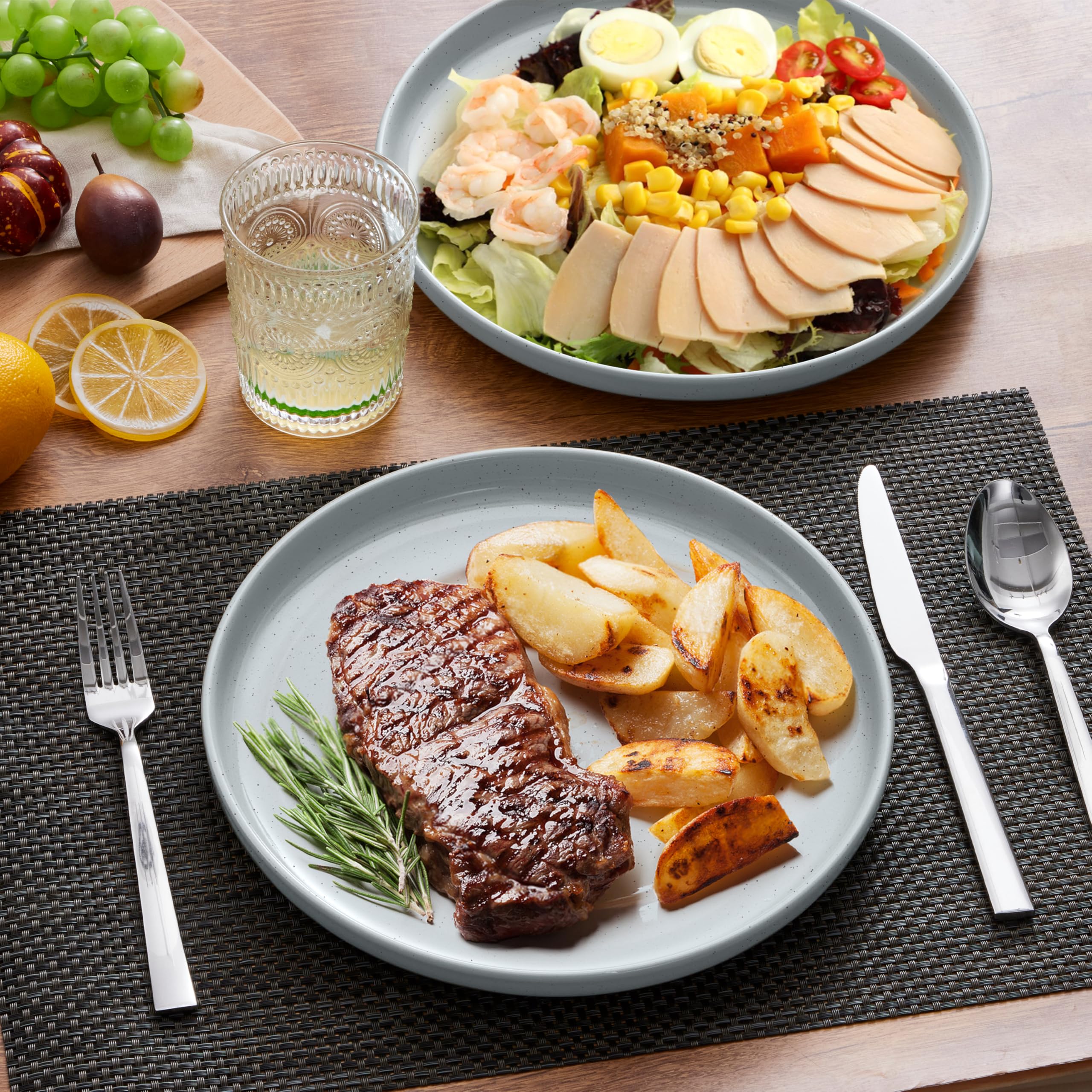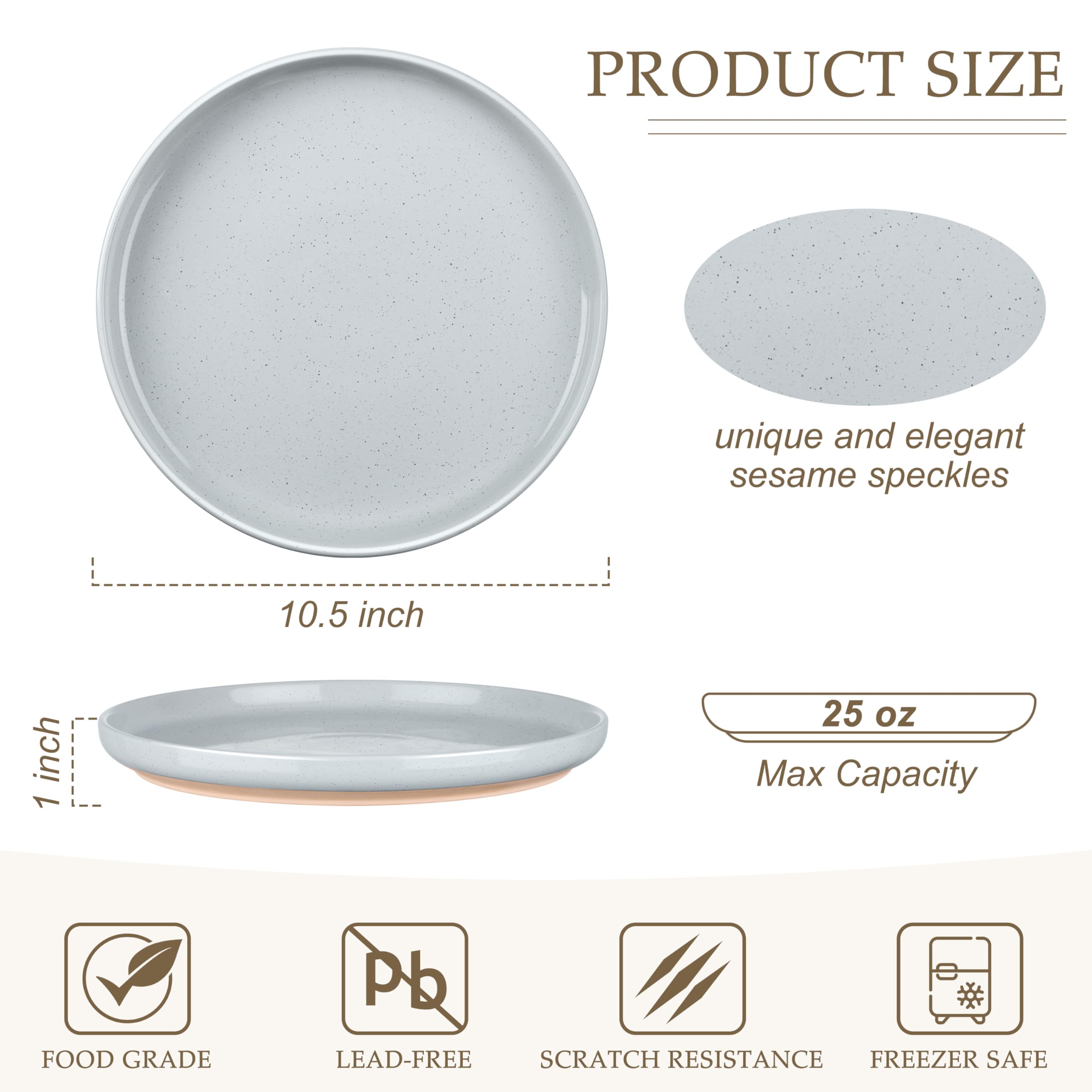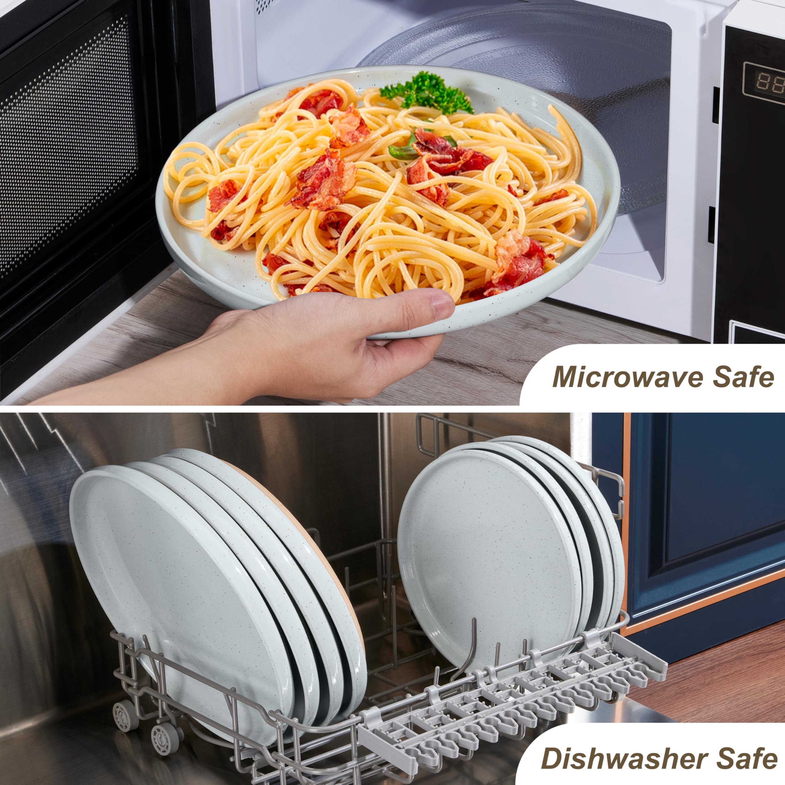 Healthy Stoneware: made of premium lead-free stoneware, no harmful substance leaching into your food, fried at 2400℉ high temperature for 13 hours, making the plates sturdy enough to resist chipping, preventing scratches from your knives and forks