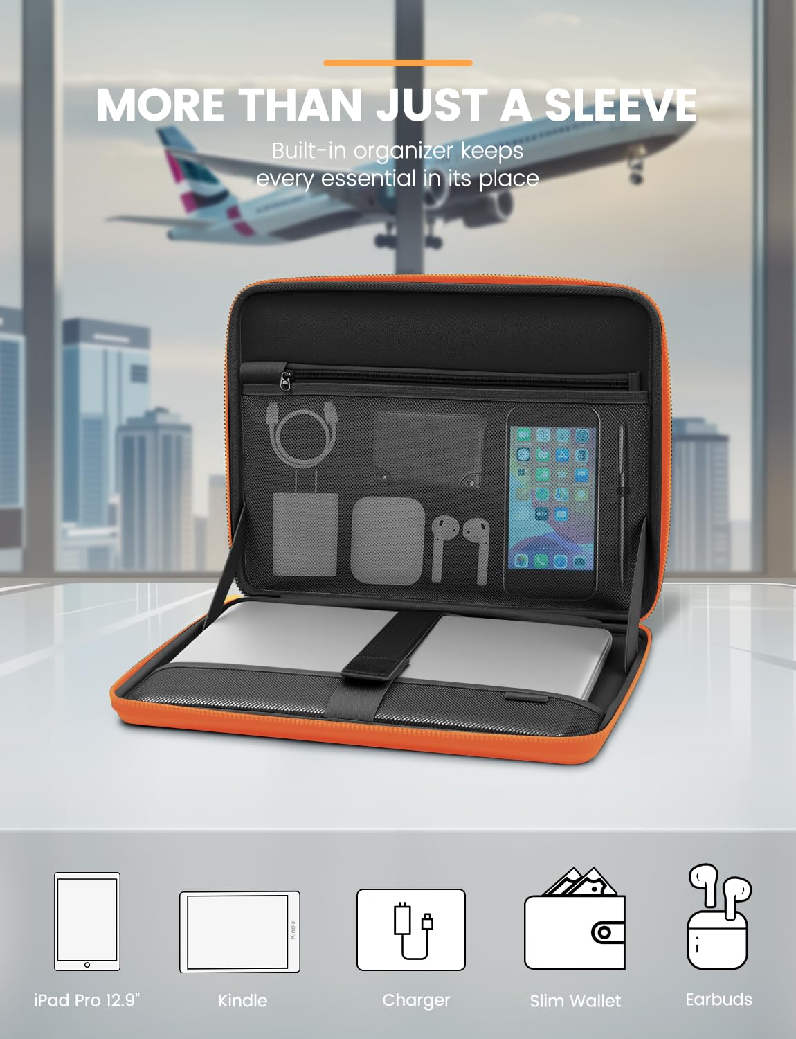 Multi-Functional Inner Pocket : With a built-in zippered compartment, these laptop sleeves keep your charger, phone, cables, and pens neatly in place. No more tangled wires or forgotten accessories. It's the small convenience that matters—especially when you’re dashing through terminals or working from anywhere with this macbook sleeve.