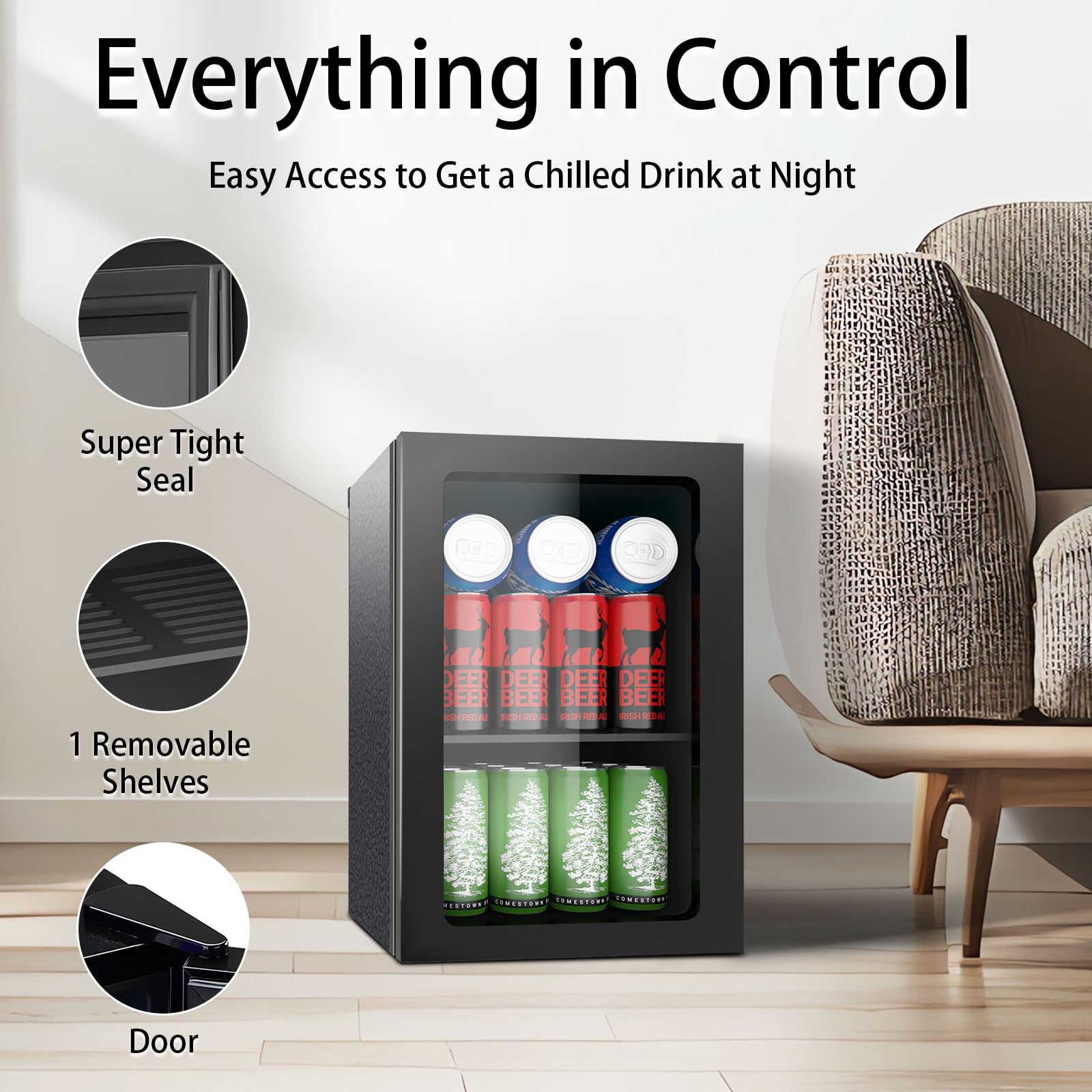 Quiet + Advanced Cooling System- The powerful compressor based cooling system ensures cool quickly and no noise. Beverage fridge only emits less than 40 db volume during operation. With our small fridge, you won’t just enjoy cold drinks, you’ll have a quiet environment too