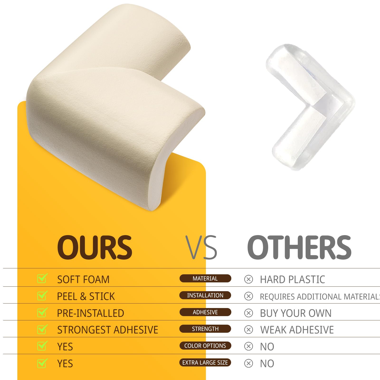 Foam Corner Protectors: GMAKIE Edge Protector is made of upgraded foam material. Includes 4 HEAVY-DUTY premium, 0.47-inch thick, pre-taped, baby proofing corner guards. Compared with the other product made of silica gel, it has greater elasticity and softness, so that it can absorb stronger impact force