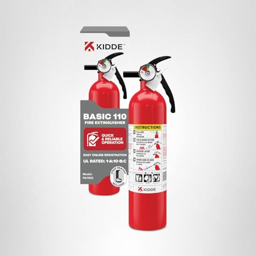 Product Description Help protect your home and family with the Kidde Multi Purpose Fire Extinguisher for Home, Office, Dorm, Residential, 1A10BC, engineered to combat basic fires in your home including trash, wood, paper (Class A), liquids and gases (Class B), and electrical equipment (Class C). The simple & reliable operation is designed to combat fire hazards using the PASS (Pull, Aim, Squeeze, Sweep) firefighting method . Molded from lightweight aluminum and fitted with a simple-to-read pressure indicator, the durable valve assembly is designed for years of service. The strap bracket lets you mount the extinguisher in an easily accessible place so it’s always ready for an emergency. The easy-to-pull safety pin gives you quick access and an ergonomic, rust and impact-resistant steel handle provides a remarkably comfortable grip. Contains 2.5 lbs. of monoammonium phosphate fire-extinguishing agent. Note that the dry chemical agent in this fire extinguisher is non-toxic but may cause skin irritation. Place a fire extinguisher within easy reach and on every level of your home where fires are more likely to start. Residential, single-use only. Dispose & replace if used, discharged, or if the fire extinguisher is over 12 years old. UL Listed. 6-year limited manufacturer's warranty. From the Manufacturer Protect your home with Kidde FA110 Multi Purpose Fire Extinguisher 1A10BC. We recommend at least one fire extinguisher for every 600 square feet of living space. This fire extinguisher contains monoammonium phosphate, a dry chemical extinguishing agent that is nontoxic, inhibits re-flashing of the fire, costs less and is more effective than carbon dioxide, and is not easily dispersed by air currents. Note: Not recommended on computers or similar equipment. Easy to use on a fire: just remember the "P-A-S-S" method. Pull the pin on the fire extinguisher, Aim the fire extinguisher at the base of the fire (stand 6 feet from the fire), Squeeze the handle of the extinguisher, and Sweep the extinguisher left to right while aiming at the base of the fire.