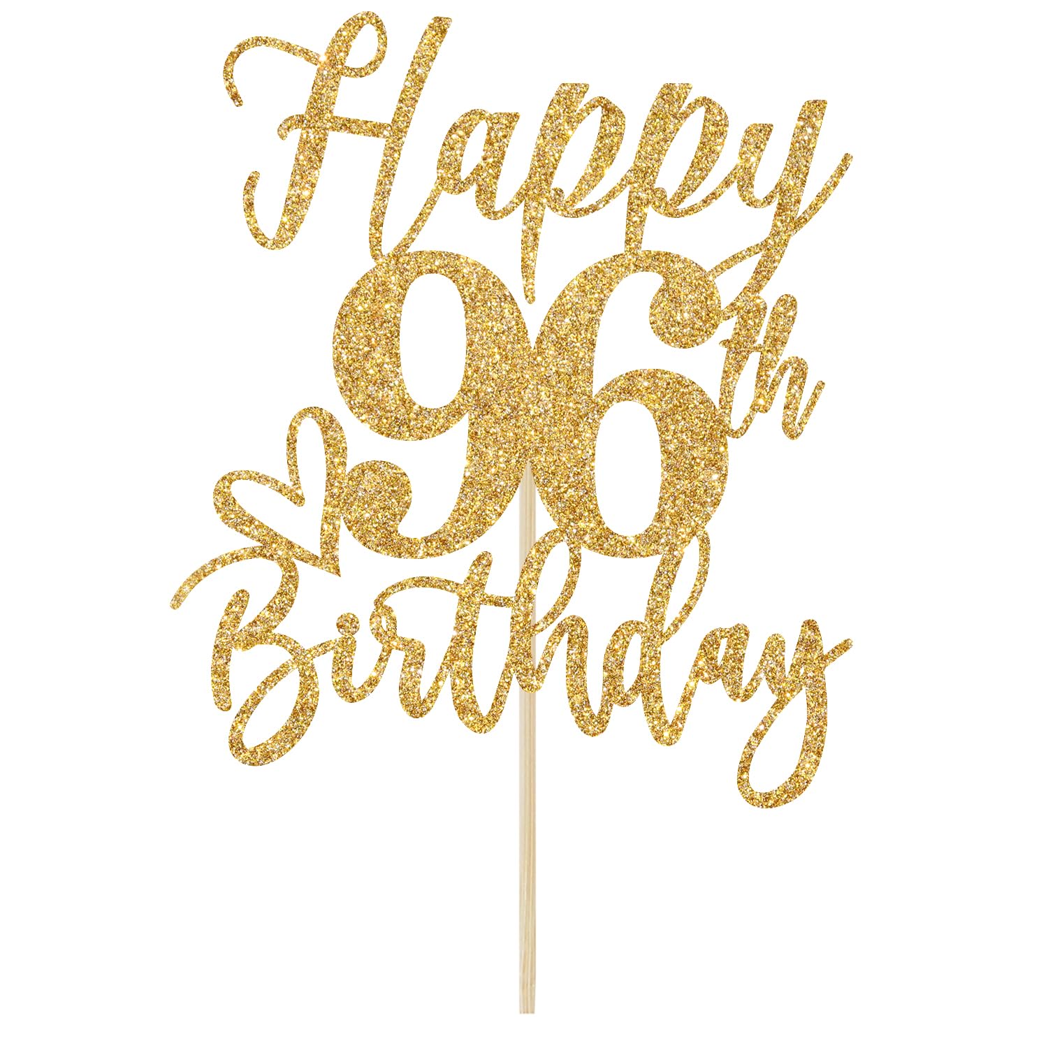 Happy 96 Birthday Cake Topper It made of quality the glitter paper and toothpicks which are safe for use. They are great anniversary themed party cake toppers, to make the cake looks much more different. The cute cake toppers also can be used as cupcake picks, appetizer picks, fruit picks, or party food picks, etc. This classy luxurious cake topper is a great choice to decorate for your party idea. It is perfect for party celebrations! Used as a photography prop, it will be sign to take photo in your party.