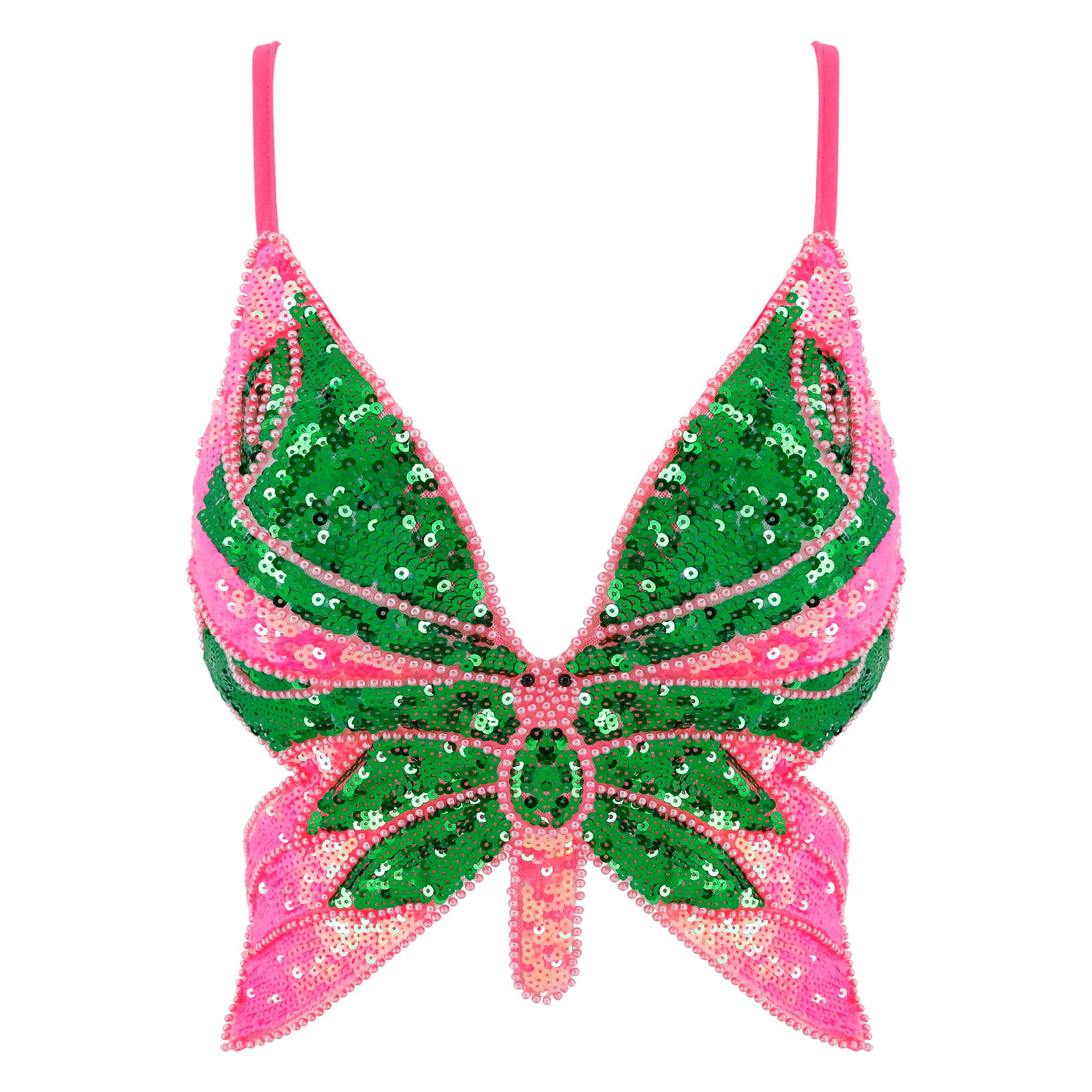 Design&Size: One Size Sequin Butterfly Tops Fit for Women. Breathable and Skin-friendly. Tie on the back, holographic effect, unique and sexy double-sided low-cut navel bare-midriff design, make these butterfly tops for women more charming and distinctive, making you more attractive at party.