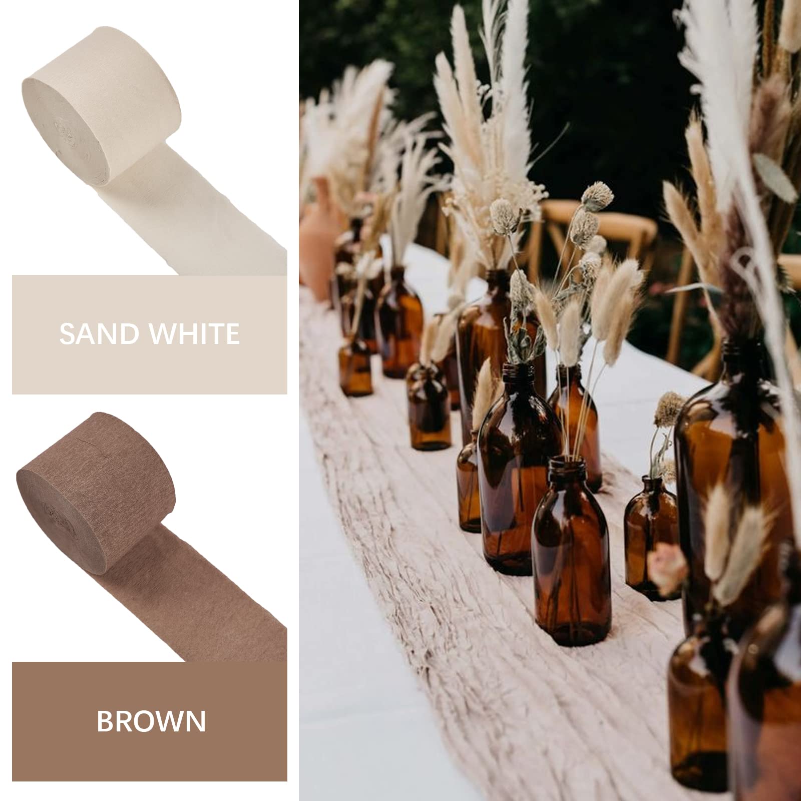 Package Included:You will receive 4 precisely rolled party crepe paper in brown and sand white colors, each roll is 1.8 inch x 82 ft, these crepe paper rolls are enough for your baby shower decoration, retirement and engagement decoration needs