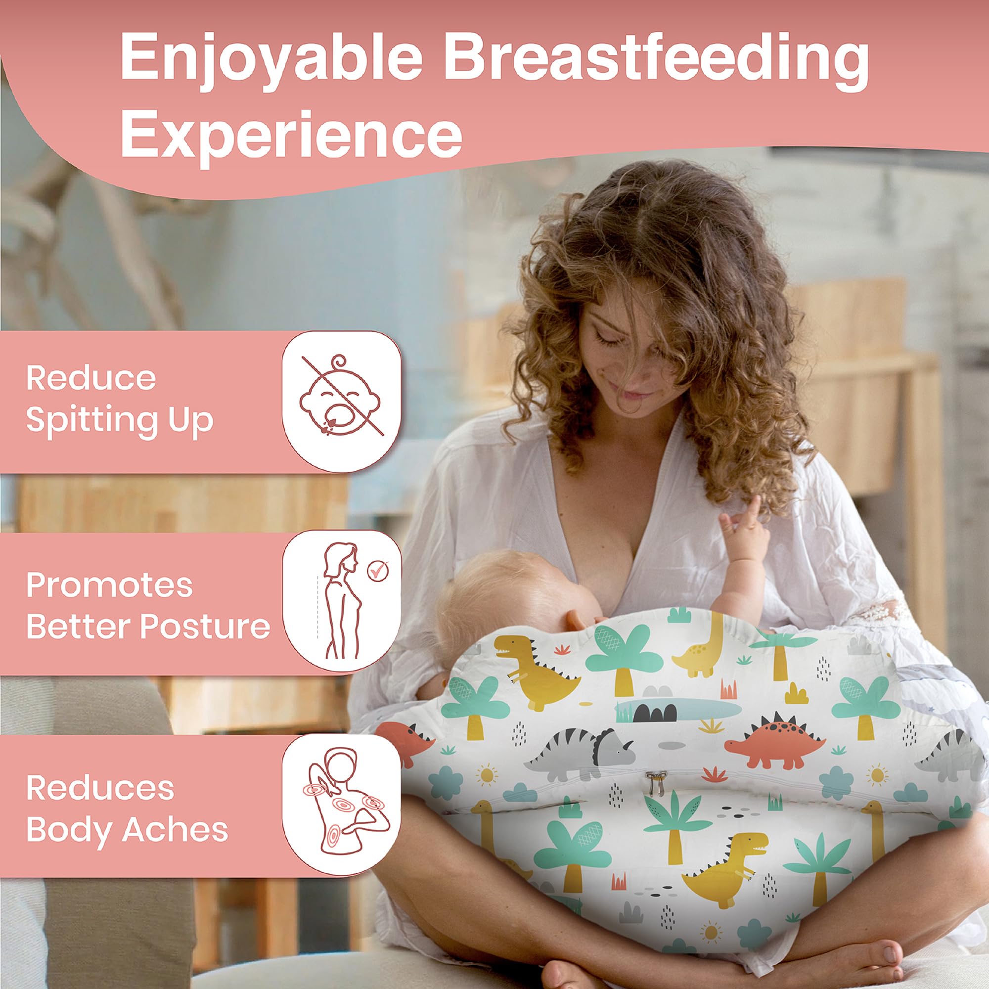 [Quality You Can Count On] With its 100% cotton, removable and machine washable cover for easy maintenance, covered zipper to prevent any contact with your baby's skin, and filling of 7D polyester cotton which you can add or remove the filling as needed to find your ideal nursing height, it provides a plush yet comforting surface for both you and your infant. Measuring 28 x 16 x 8 inches, it offers ample space and comfort for a peaceful feeding experience—the perfect companion for every nursing mother.