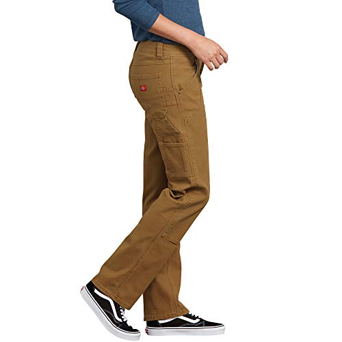 Description Let's talk about some pants that are tough-as-nails. Dickies' Stretch double-front carpenter pants hit slightly below the waist with heavy-duty rivets on the front pockets. The brushed duck material is made from a cotton/spandex fabrication, keeping it durable, with enough stretch for comfort. Knee-pad openings on the front make working on your knees easy, while the utility pockets and hammer loop provide space for your necessities. The contoured waistband stretches to prevent any gapping in the back, while the stretch fabric provides must-have comfort.