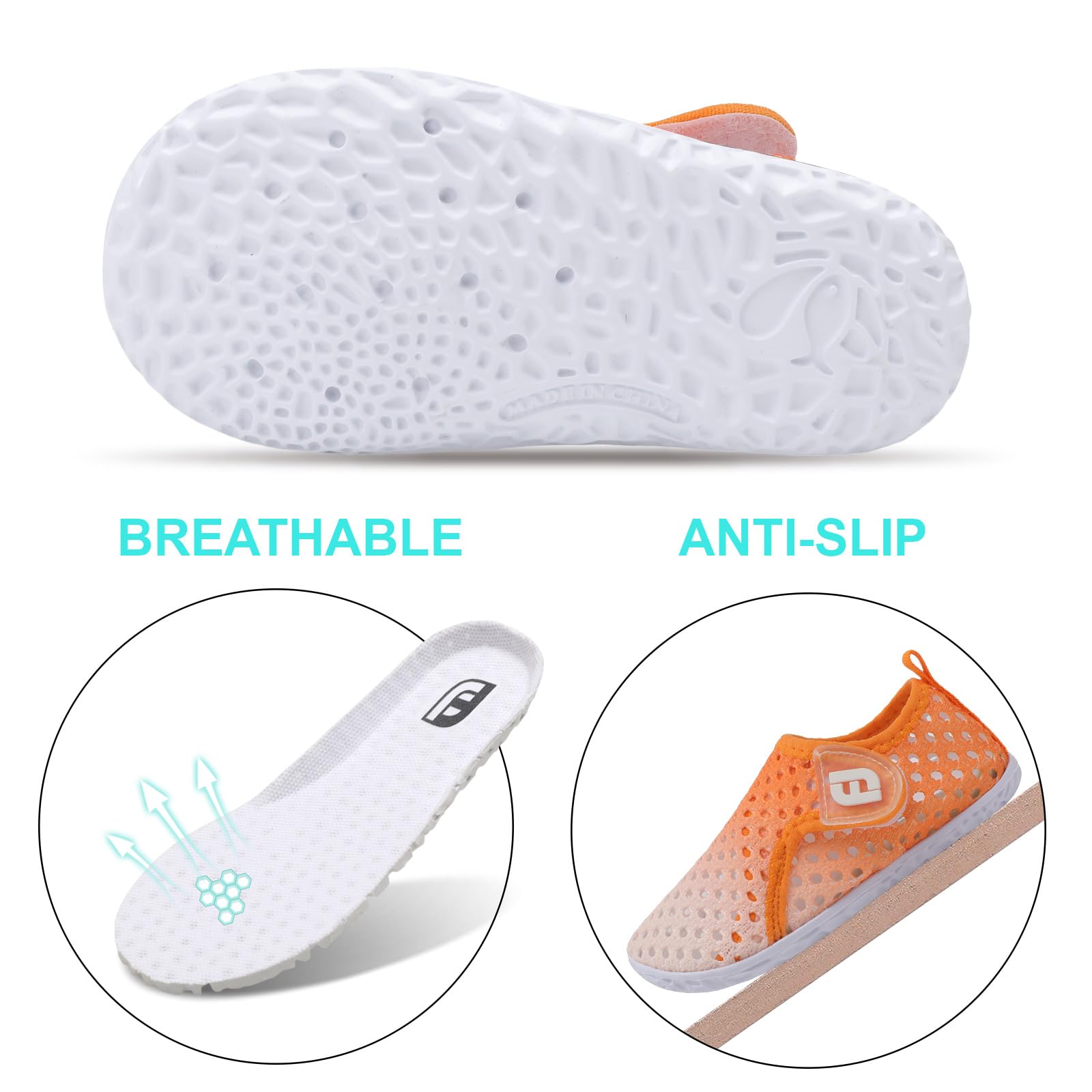 Non-slip Outsole: Non-slip EVA sole make sure of shock absorption performance and protects your child’s feet from being hurt by sharp objects