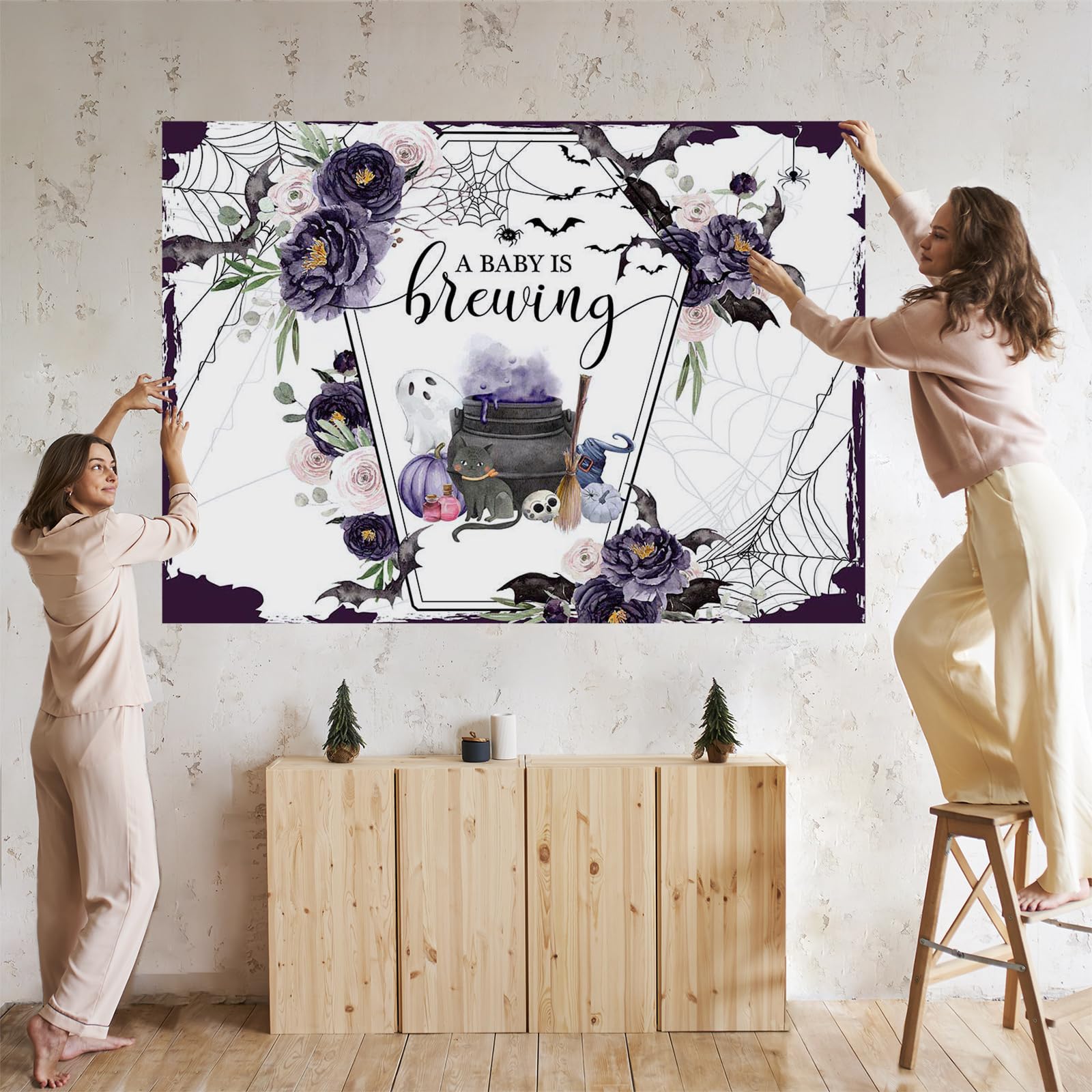 Mocsicka Halloween Baby Shower Backdrop A Baby is Brewing Baby Shower Party Decoartion Watercolor Flower Coffin Vampire Bat Baby Sprinkle Banner How to custom? Firstly, you need to find “Mocsicka Party” below the button of “Buy Now” and then choose a customized subject by asking a question contact us. Secondly, You need to send us an email with your customized request, at the same time, you need to tell us which product you need to be customized and what size do you need. Thirdly, We will send you a proof to confirm. After confirmation, we will send you a link to purchase. Features of Cotton material Digital computer-printed backdrop. Lightweight and durable. 1.Cotton cloth is not washable. Please use a damp cloth to wipe the stain. 2.High-resolution digital print with eye-catching details and lifelike colors. 3.We are a very professional photography backdrop factory and supplier. How to remove crease To facilitate transport and packaging, the items will send folded. So resulting crease. But it doesn’t affect use. Their recovery methods are as follows: .Please iron the back of the backdrop with steam iron but not dry iron. Iron it with low heat. The crease will be removed. How to hang on it? 1.You can use tape stickers stick on the wall 2. You can use clips to clamp it to the background stand. 3.If you need, we can add holes or add pockets, This service is chargeable. Specifications of this backdropl 1.Material: high-quality Cotton fabric. 2.Package Size: 15 x 10 x 3cm 3.Widely use: for professional photography, party decoration, table cloths, curtains, product display, videos, etc. 4.Package: Only one backdrop is included(stand is not included).