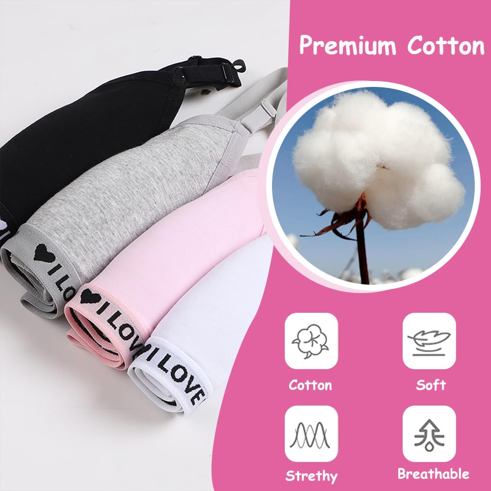 Soft And Breathable Girls' Bra: Bysion girl's bra contains over 95% cotton. High quality fabric offering professional quality guarantee. Superior cotton material has many advantages: comfortable, breathable, soft, sweat absorbent, colorfast, no deformation, no chemicals.