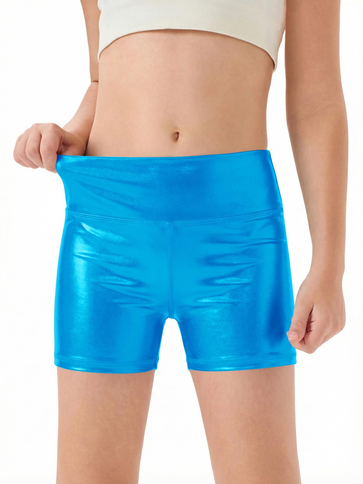 Material: Girls metallic athletic shorts are made from lightweight, comfortable and spandex materials. Seamless design to minimize friction and irritation, ensuring a smooth and comfortable fit to the skin. Soft and stretchy, they wick moisture and are breathable to keep you dry and comfortable. You can enjoy the workout in relax