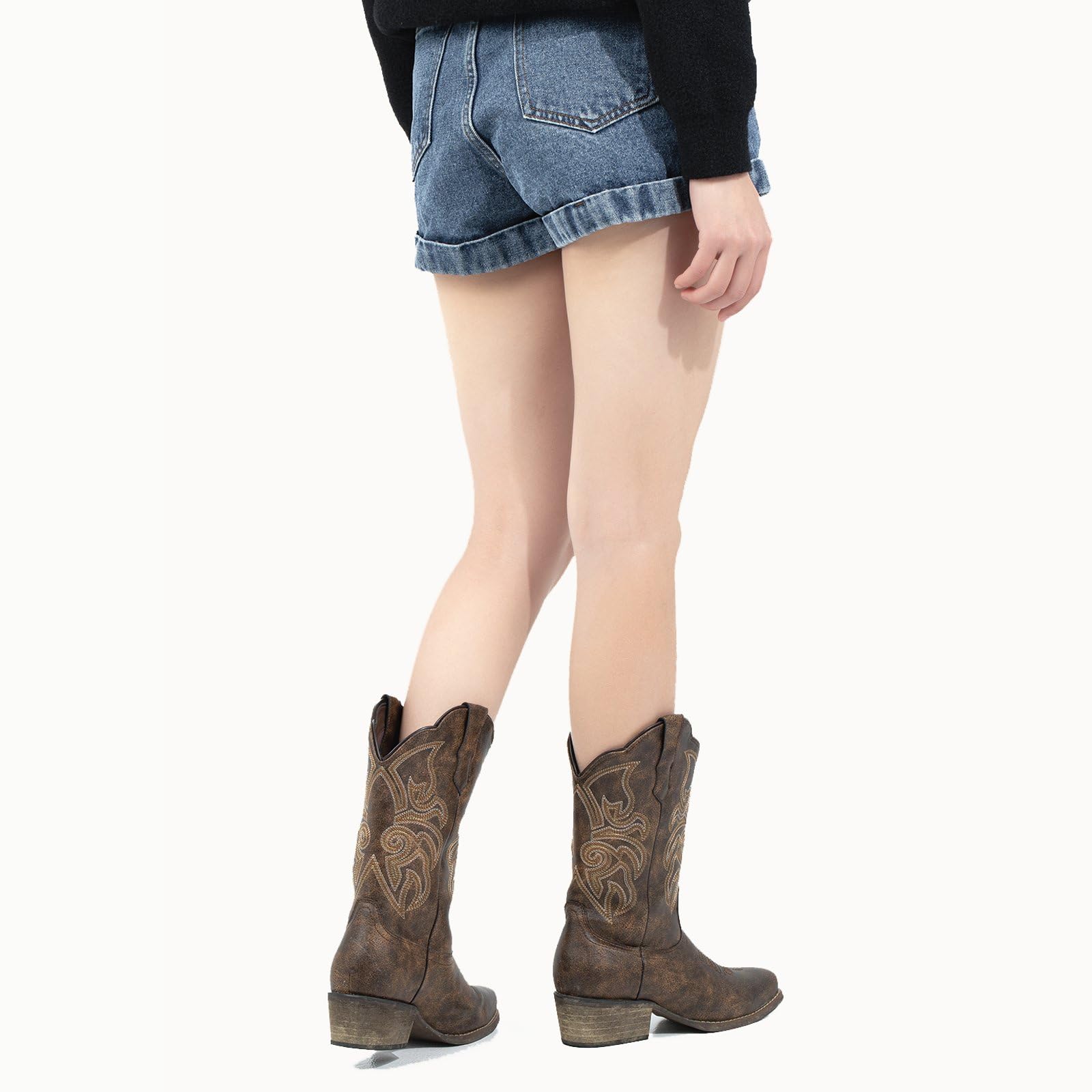 BOOTS CUFFS WITH FLORAL-SHAPED: The floral shape breaks the monotony of traditional boots, adds a feminine and stylish touch, making the cowgirl boots look cute and elegant.