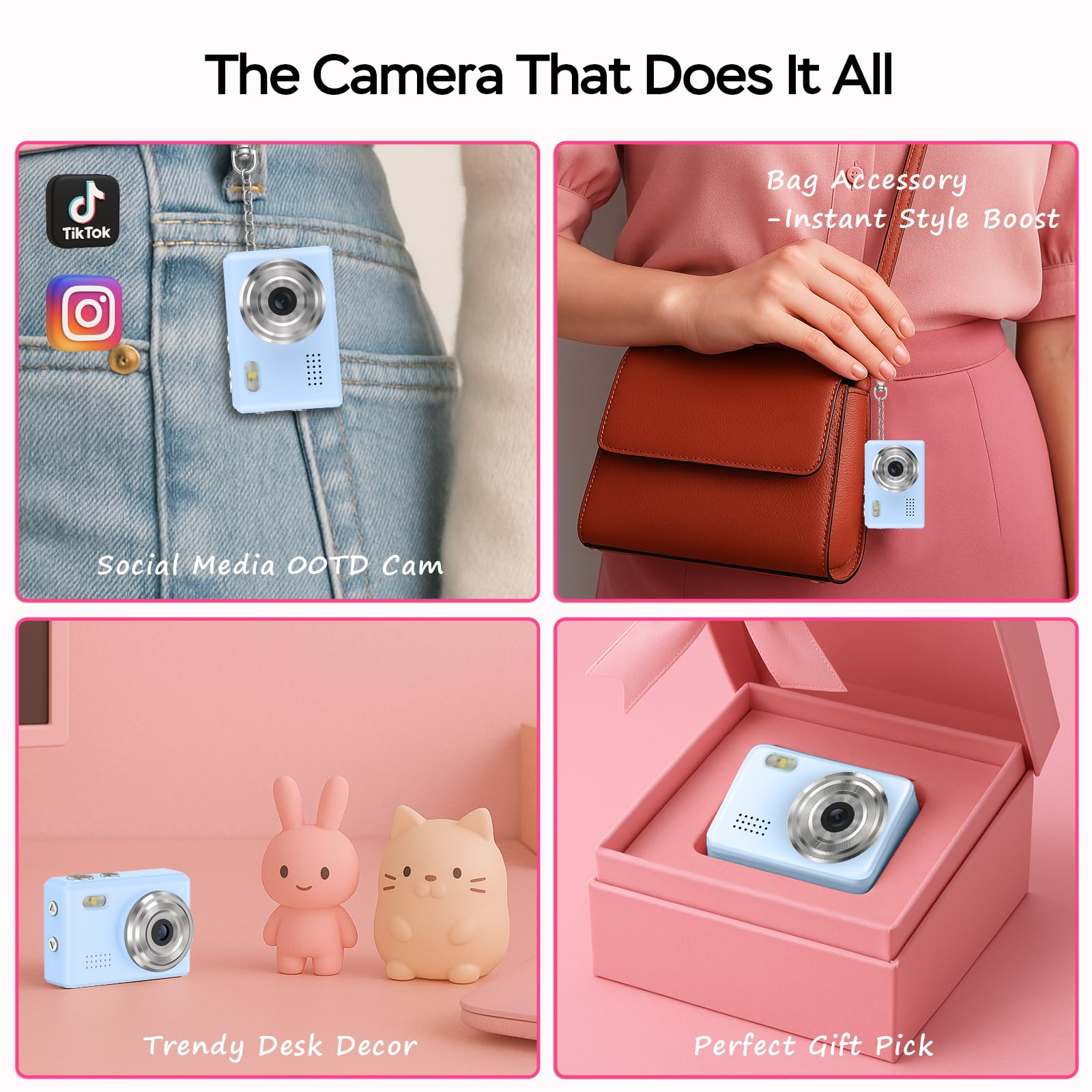 🎯【Perfect Gift, Ultra-Portable Keychain Design】 Capture life's moments with our 0.04lbs mini camera that fits on your keychain! At just 1.67x0.59x1.13 inches, this tiny camera slips effortlessly into pockets for concerts, anniversaries, travels, or daily adventures. The included anti-loss keychain mount ensures you'll never miss spontaneous shots.