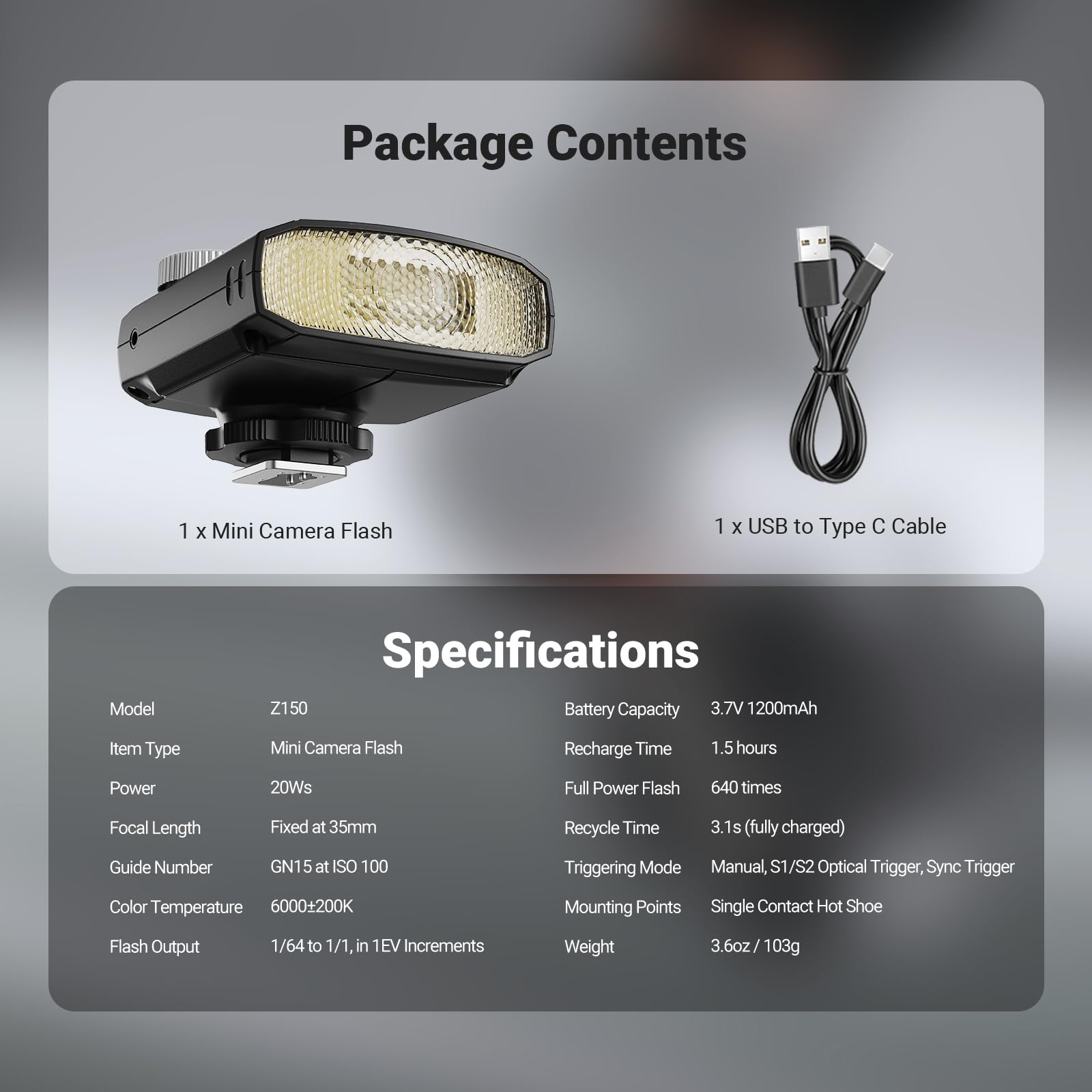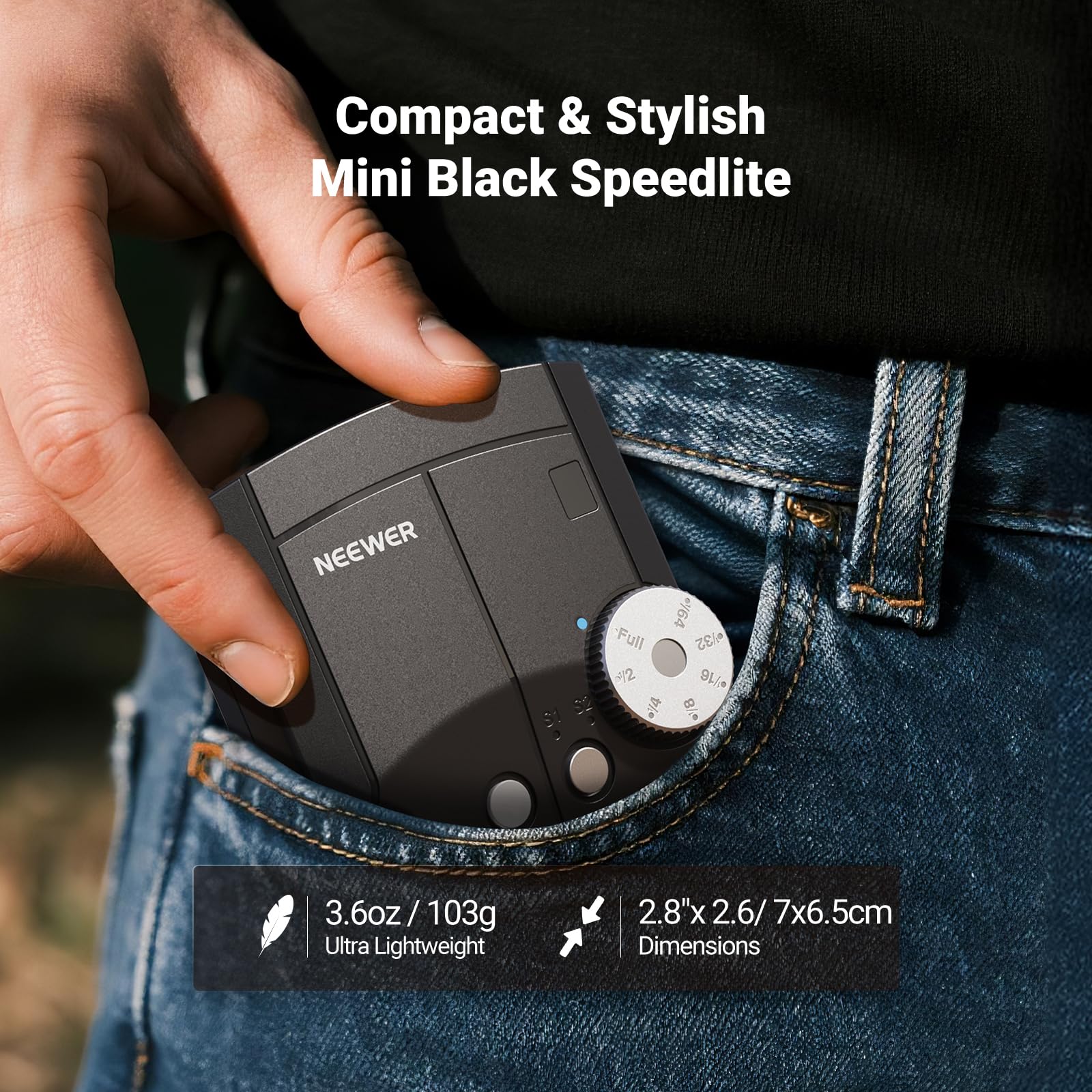 【Stylish Mini Black Speedlite】 NEEWER Z150 is a pocket sized, lightweight (3.6oz/103g), retro style camera flash, more portable than studio strobe equipment. Its compact and vintage design complements your device, as content creator essential photoshoot light and influencer must have photo lighting gear for on the go photography