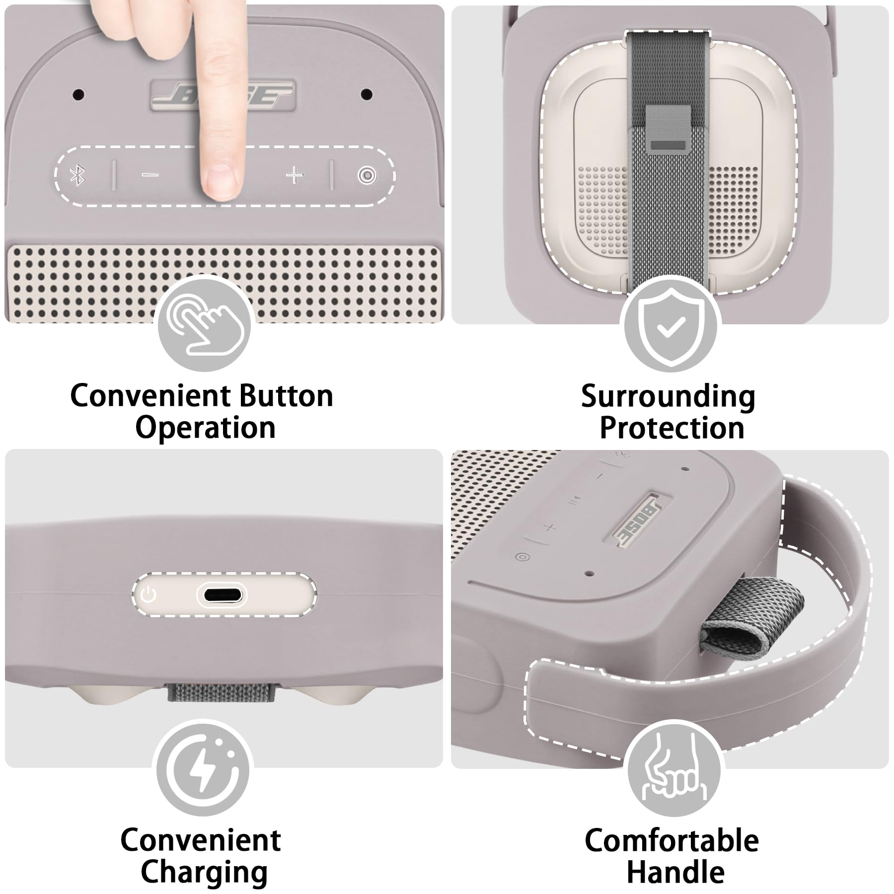 This bose micro 2nd bluetooth speaker combines practicality with visual appeal, with a color scheme that matches the tone of the bose soundlink micro 2nd speaker, maintaining a stylish and unified appearance. There are two colors to choose from, which can meet different style preferences. The surface can prevent fingerprints and sweat stain, and the washable material is convenient for daily cleaning.