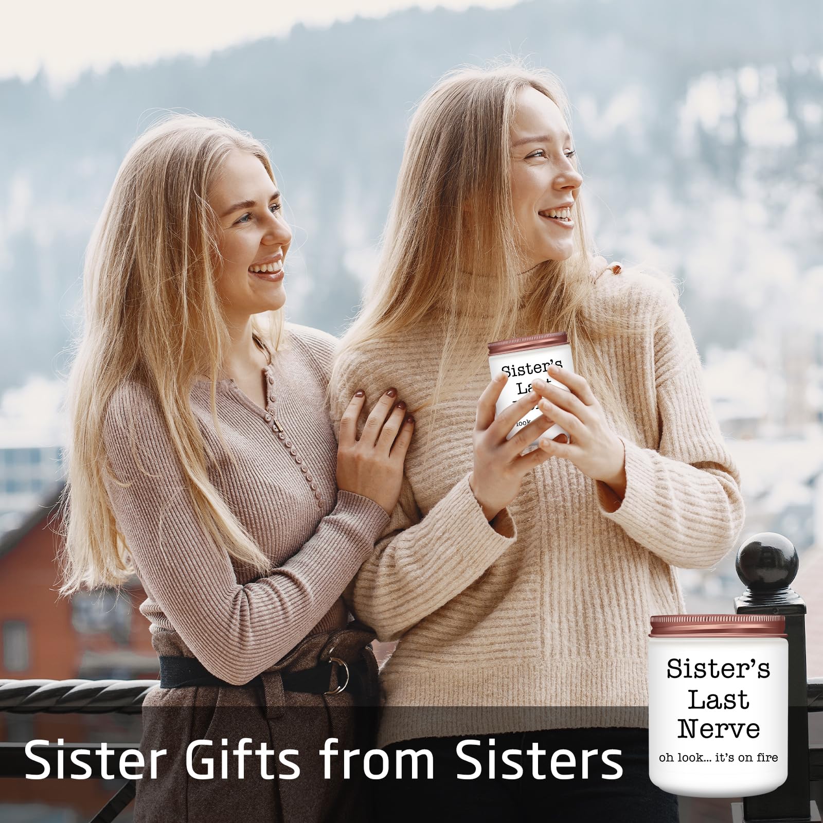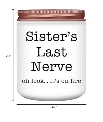 Sister Gifts from Sisters: Perfect as a sister gift, this classic jar scented candle comes with a heartwarming and humorous saying, "Sister's last nerve oh look... It's on fire". Sure to bring a hearty laugh and warm feelings