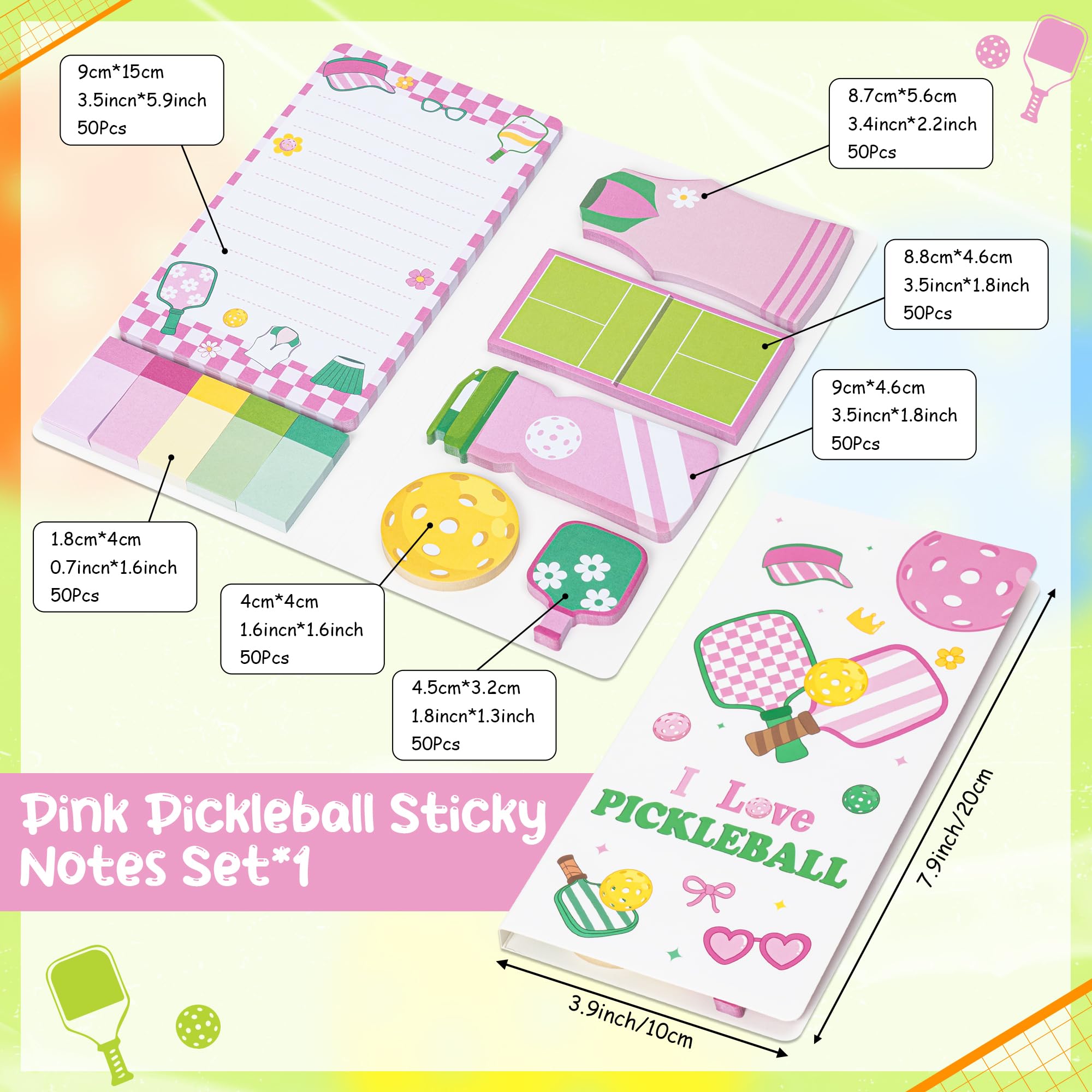 Package: You will get a set of pink pickleball sticky notes, including many self-adhesive note pads in different styles and sizes. 50 sheets per pad, 550 sheets in total, meet your various needs. And the sticky notes set is in suitable size, very easy to carry