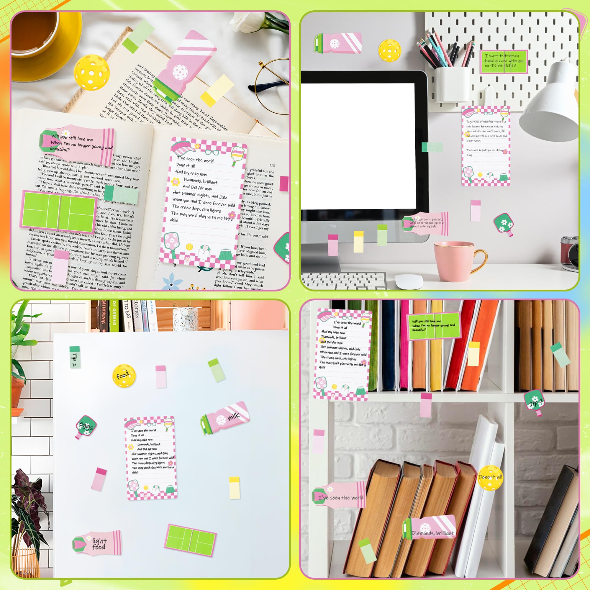 Sporty & Cute Design: This sticky notes set features fun pink pickleball patterns with playful court and paddle graphics. The vibrant and cheerful designs are perfect for adding a sporty yet cute touch to your notes and reminders
