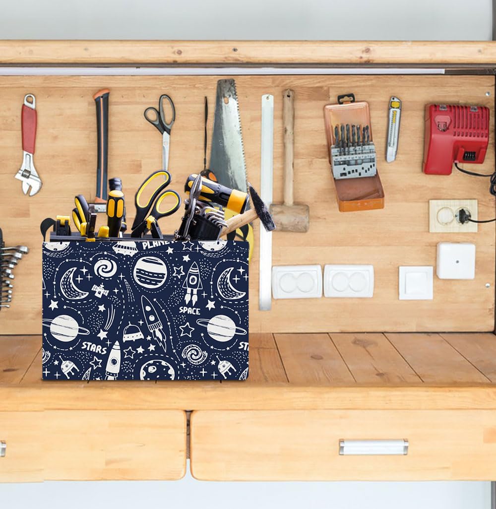MULTI-PURPOSE:Canvas tropical Storage Bins are a perfect way to accessorize, organize, and store items at home, office Ideal or shelf baskets for cube storage organizer shelves, cubbies, bookcase, desk, or floor. Sturdy wire frame stands up to everyday use in shelves, home store, bathrooms, bedrooms, laundry rooms or closets.
