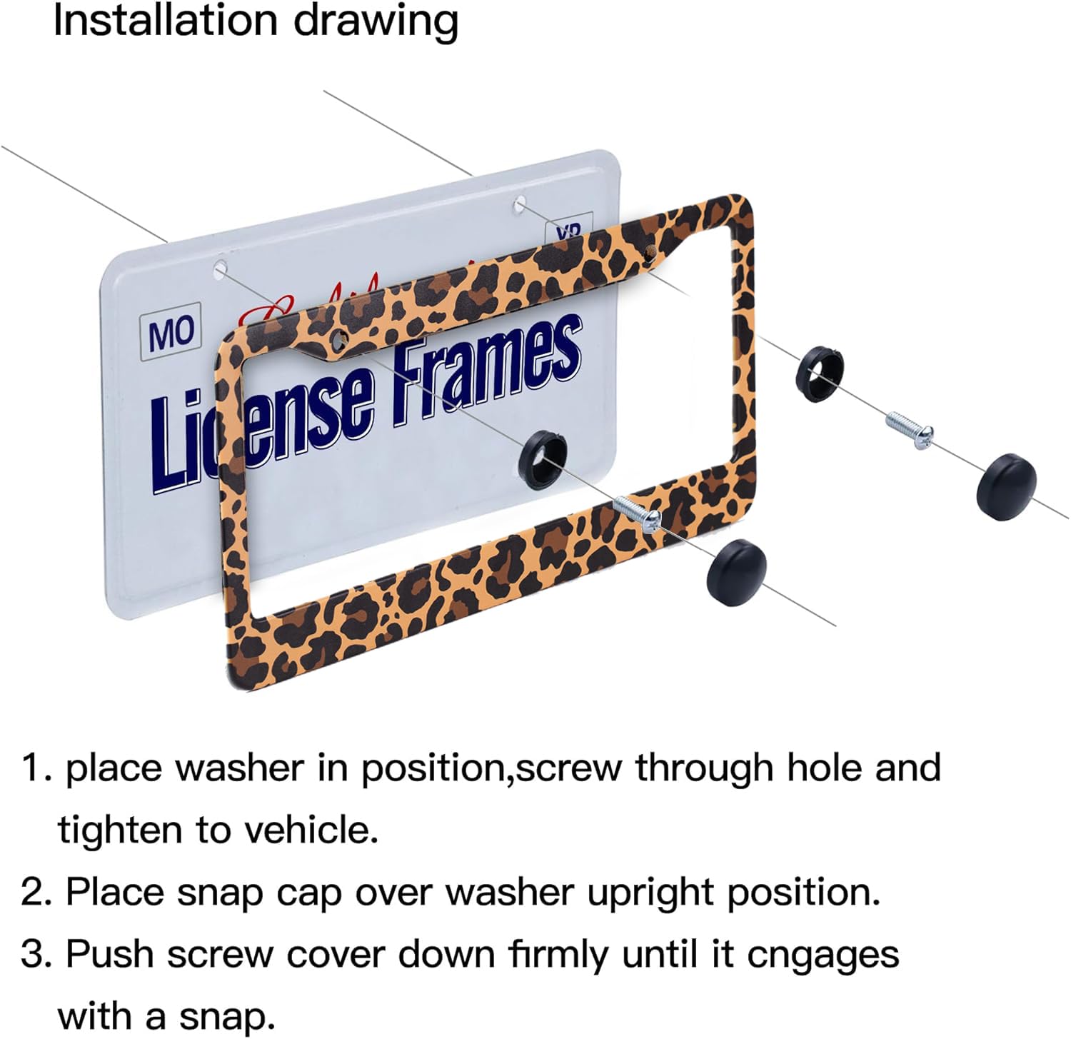 Easy To Install: The Package of leopard print license plate frame for women Includes 4 Black Carbon Fiber Pattern Screw Caps And 4 Screws/ License Tag Fasteners With Washers; The cheetah print license plate frame Screw Hole Is Relatively Small And Easy To Install, You Can Install The cheetah license plate frame for women Quickly And Efficiently