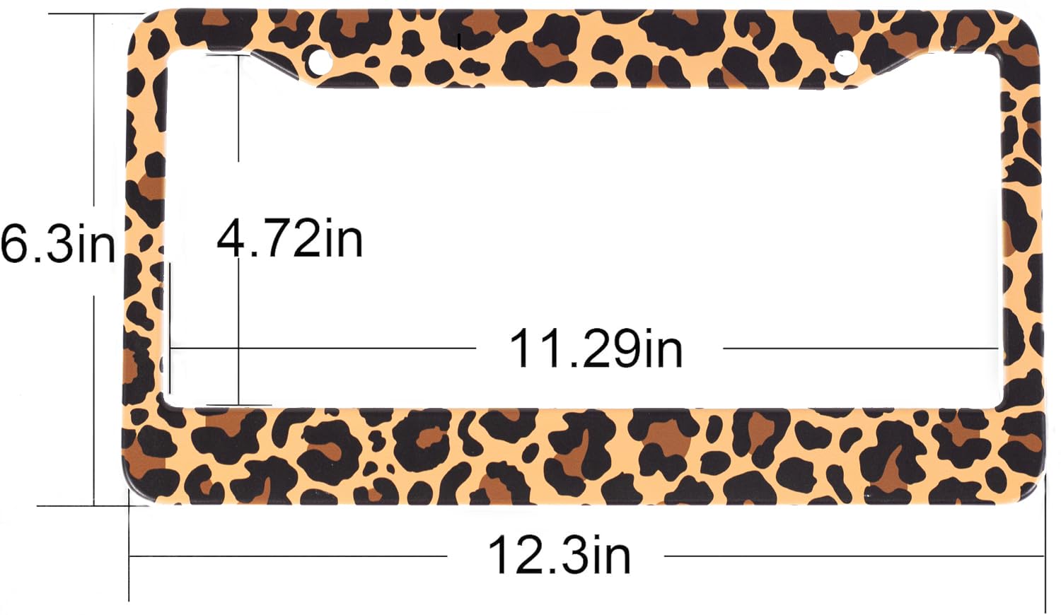 Appropriate Size: The leopard print car tag frame Size Are About 12.3 X 6.3 Inch, Please Confirm If the leopard license plate Holders Size Will not Cover Your county sticker or Relatively important information Before Placing The Order of the leopard tag frame.