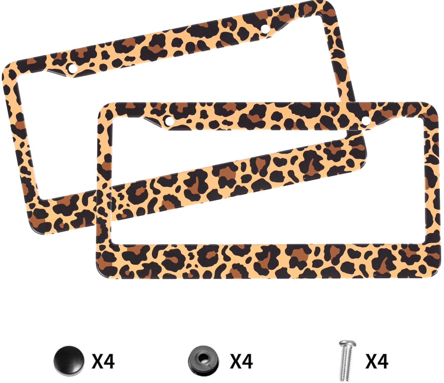 Package Content: You Can Get 2 Pieces cheetah print license plate frame In Total, 1 Front And 1 Back, Screw Fittings Included; The Complete Combination Makes Our Car Different From Others, The leopard print license plate frames Are Also A Nice Gift For Those Who Like To Decorate Cars At The Same Time