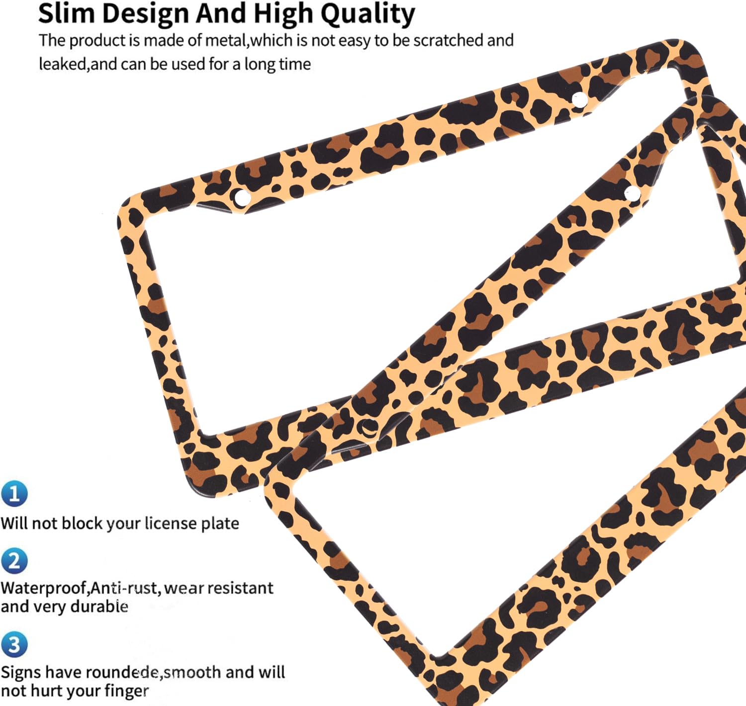 Durable Material: This leopard license plate frame are made of aluminum,The license plate frames leopard Is resistant to wear and rust; Even If cheetah license plate frame Get Dirty In The Rainy Season, The Cheetah License Plate Frame Covers Is Easy To Clean.