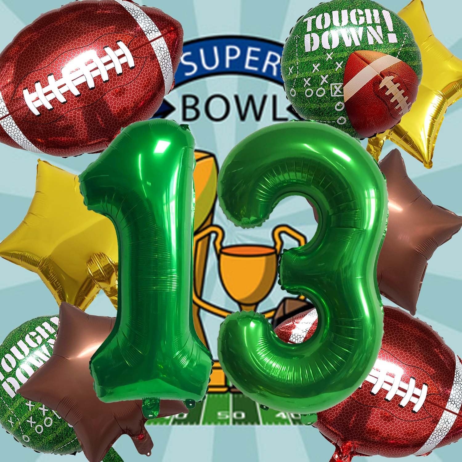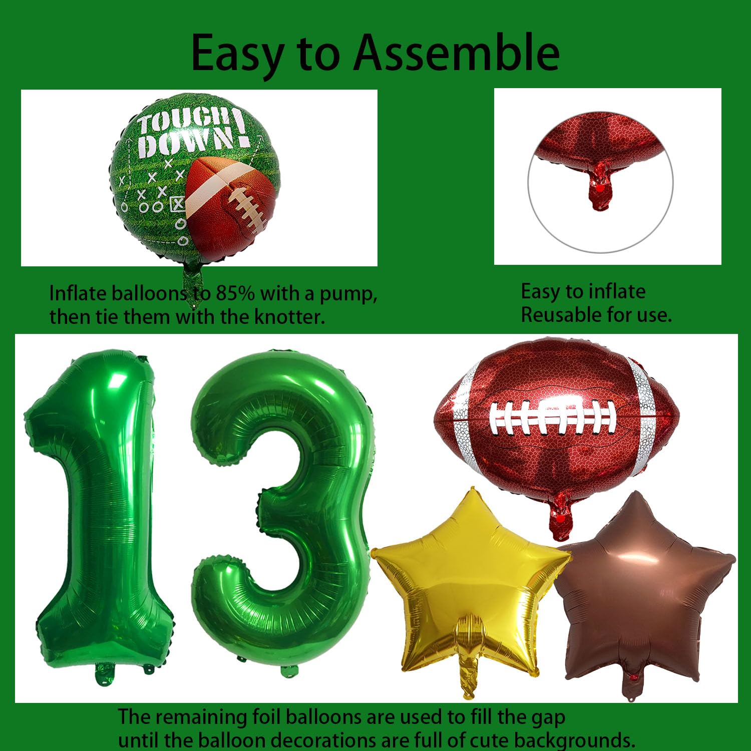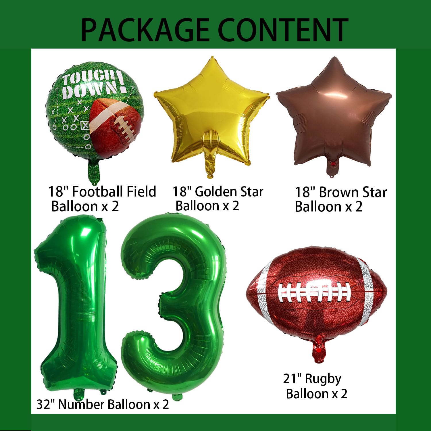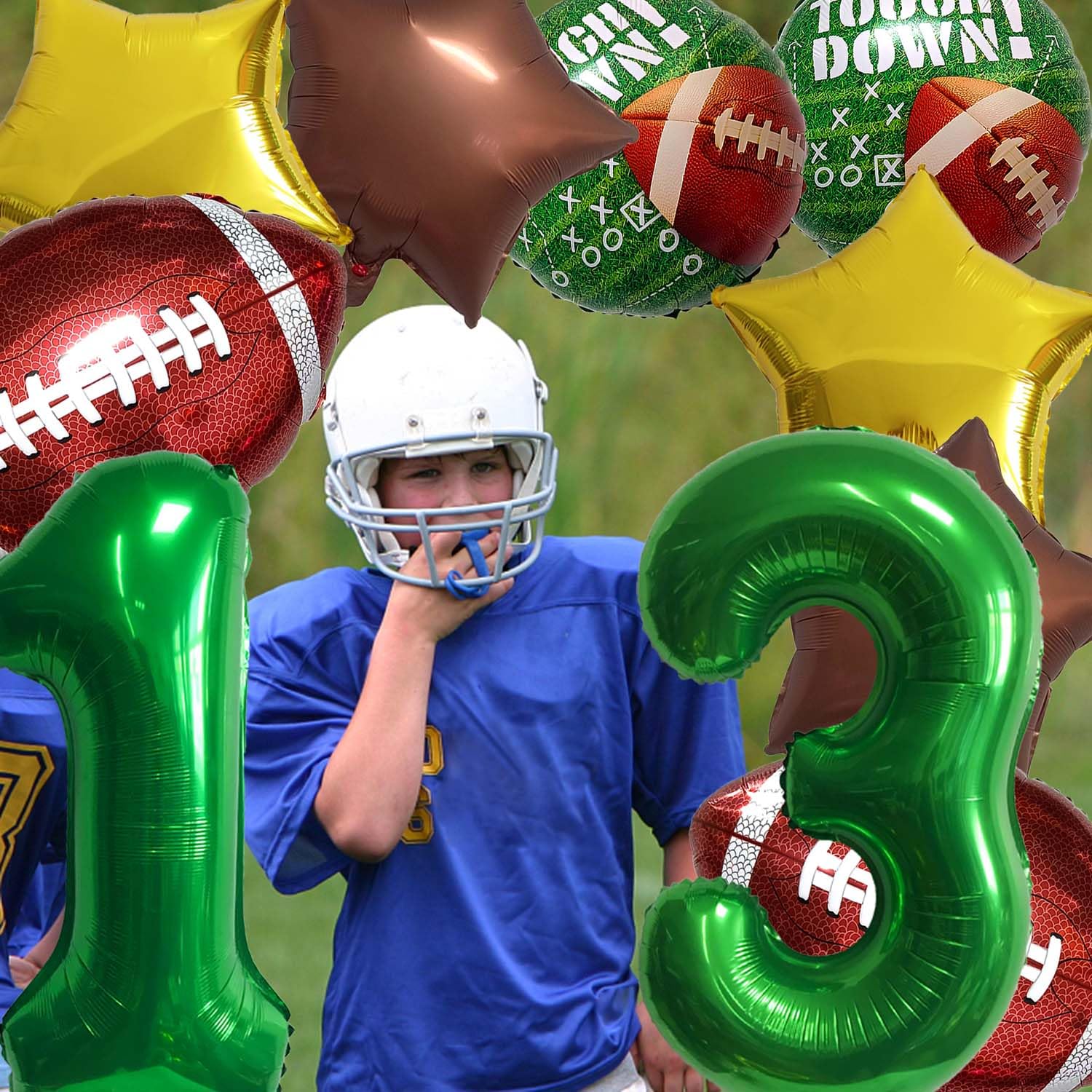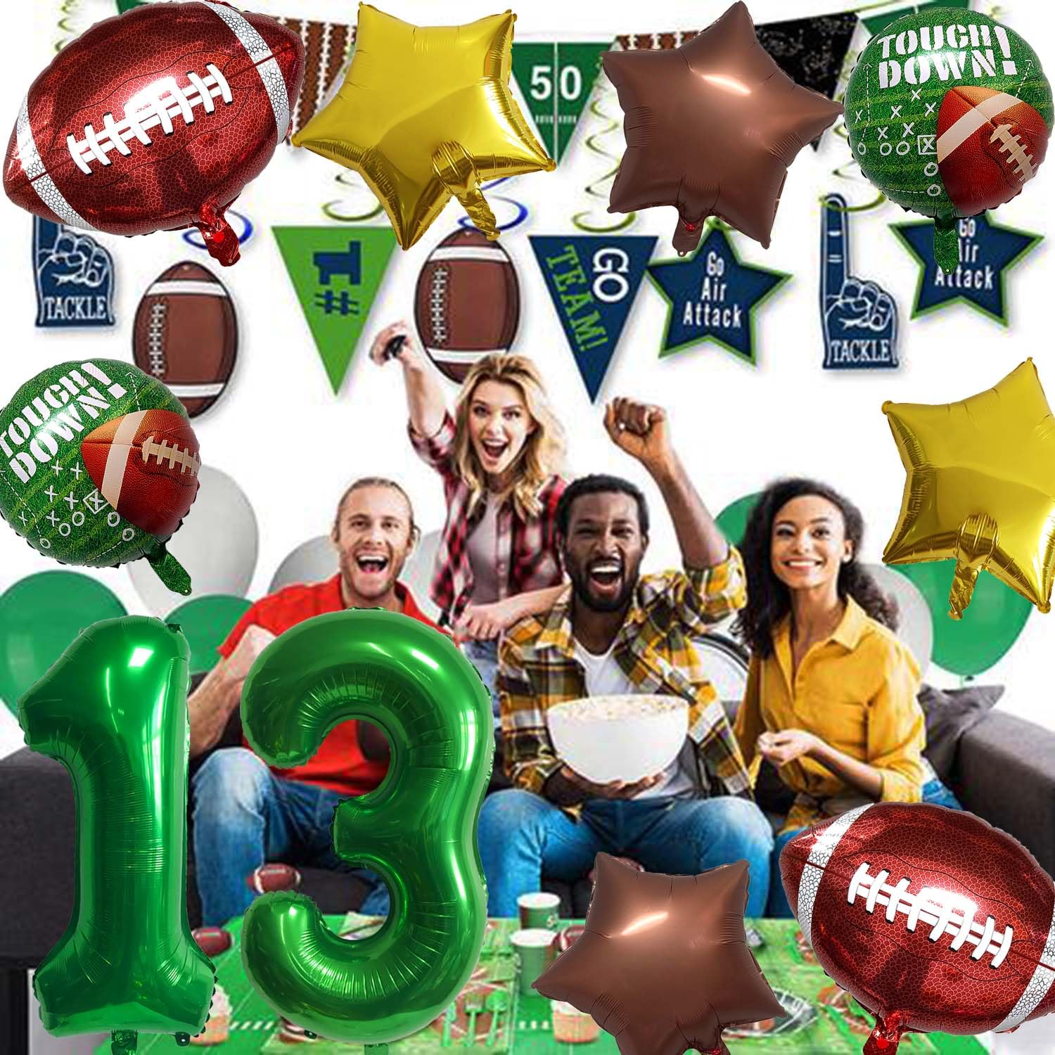 【Football Themed Decorations】:The football balloon arch features a fun and amazing design that is perfect for those looking to add a touch of excitement to their football party. The giant 13th foil balloon and rugby balloon scheme create a sporting atmosphere, while the cute brown and gold star balloons add a touch of fun. Whether you're hosting a boy's birthday party or a football boy's shower is sure to impress your guests.