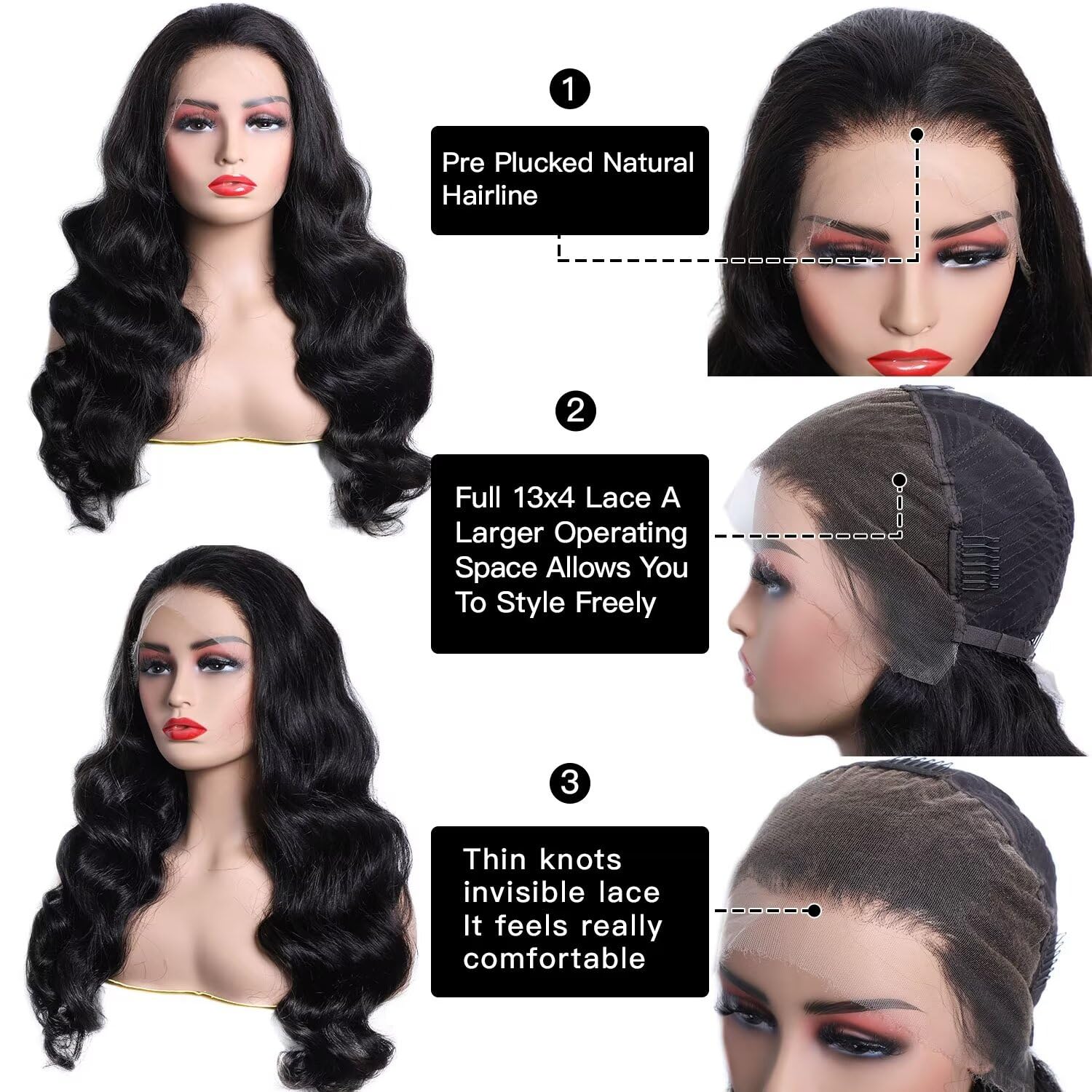 Lemoda Body Wave Full 13x4 Lace Frontal Wig Advantages--It is an upgraded version of lace products. The sides of the lace cap are wider and can be separated as needed, making it more natural, breathable, and fitting to the skin when worn. The lace is handmade by professional craftsmen.High-quality lace front wigs are long-lasting and not easily damaged or deformed. They can be used frequently and maintain a good appearance and condition.