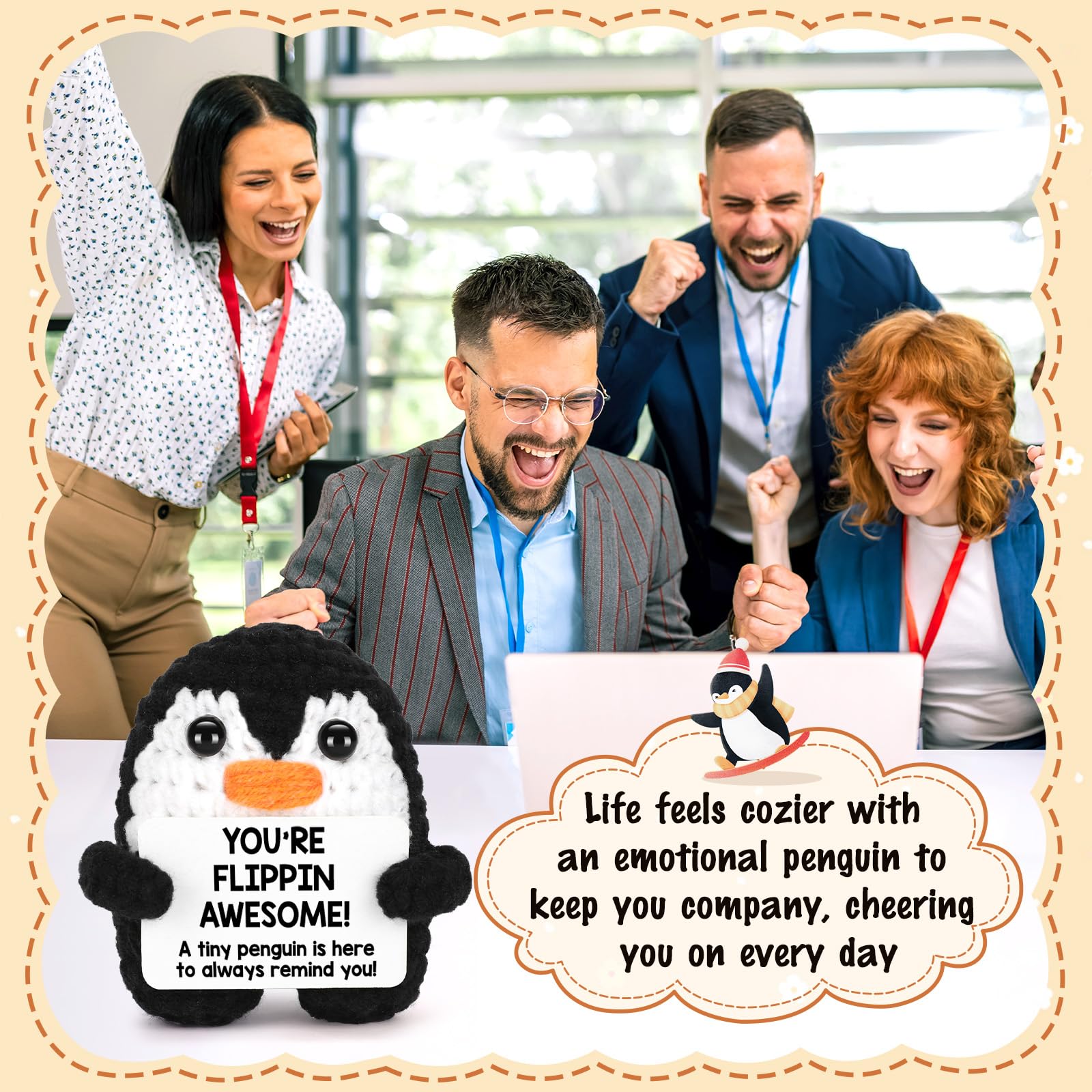 Affirmation Gift for Women & Men: Our crochet emotional penguin comes with a motivational card that says “You’re Flippin Awesome!”, giving you a daily boost of confidence and positivity. Whenever you feel stressed or overwhelmed, the cheer-up penguin gift will encourage you with motivating energy and affirmation to keep going
