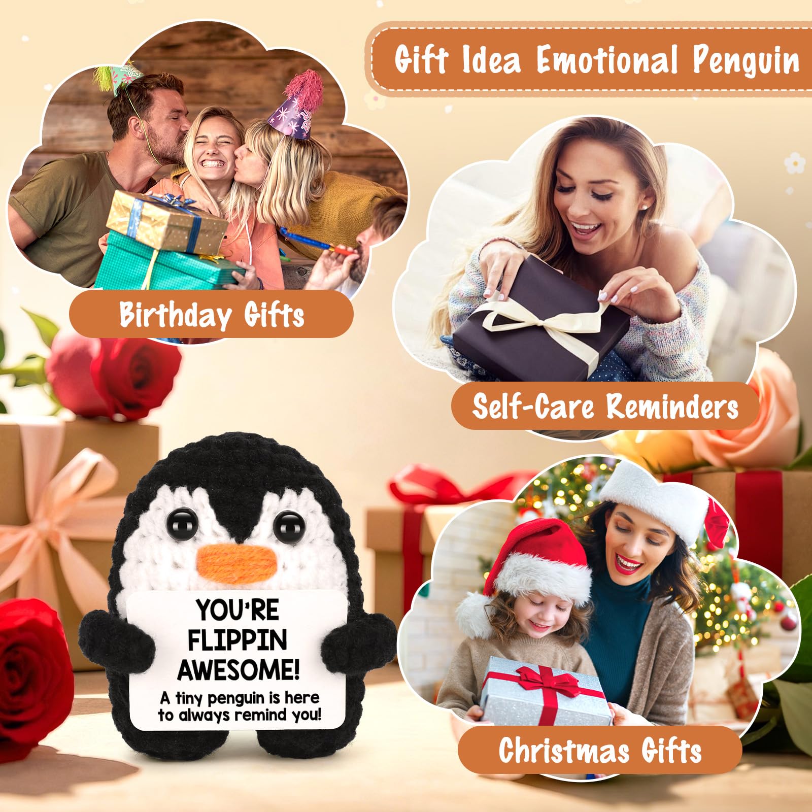 Emotional Companion Gifts: This mini funny crochet penguin is more than just a cute decor; it's a pocket-sized cheerleader! Whether you're in high spirits or feeling downcast, this penguin pal stays by your side, shares your happiness, and offers comfort during tough moments, reminding you that you are never alone. A thoughtful emotional gift for teens, women, men, coworkers, friends, and penguin lovers