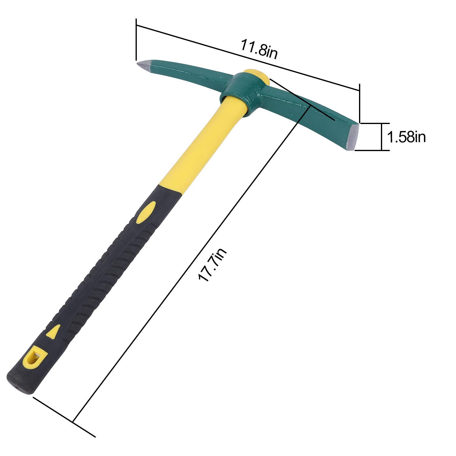 UNIQUE DESIGN - The adze hoe and pick is crafted with widened cutting edge (1.57inch) with anti-slip texture for increased friction while digging in tough soil, perfect for gardening, prospecting and camping.