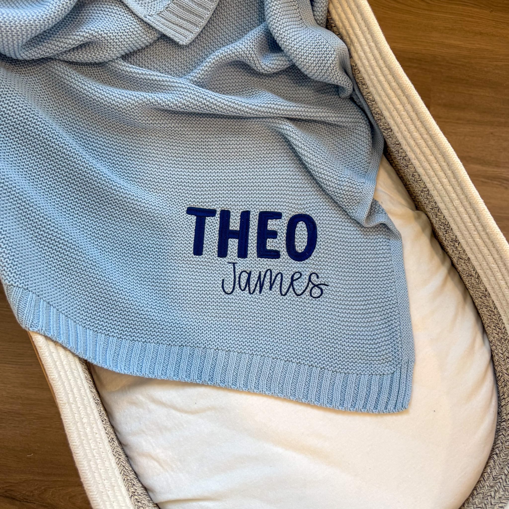 Embroidered baby blankets for boys and girls - Wrap your baby up in the warm embrace of a soft knitted blanket. Whether you want to use it as a crib blanket, stroller or car seat cover; our personalized blankets will keep your child comfortable, safe, and securely wrapped in its cozy cocoon.