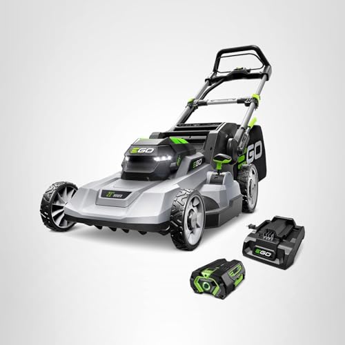 The EGO POWER+ 21” Mower delivers 6.0 foot-pounds of torque—power that exceeds gas without the noise, fuss, or fumes. The high-efficiency brushless motor delivers long runtimes, low vibration, and lifelong durability. This electric lawn mower delivers up to 35 minutes of run time on a single charge with the included 56V 4.0Ah ARC Lithium™ battery. The cordless lawn mower delivers precision cutting with its advanced mulching blade and seven cutting height positions from 1.25 to 4 inches, adjustable with one hand. Three-in-one functionality delivers your choice of mulching, side discharge, or bagging your grass clippings; an easy-access two-bushel grass collection bag is included. This push lawn mower includes bright LED lights for added visibility when mowing at dawn or dusk, and it folds flat for compact storage between cuts. Experience Power Beyond Belief™ with the EGO POWER+ 21” Lawn Mower.