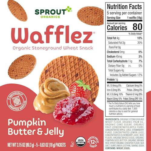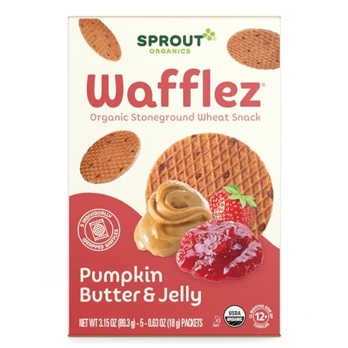 Sprout Organic Baby Food, Stage 4 Toddler Snacks, Pumpkin Butter & Jelly Wafflez, Single Serve Waffles (50 Count),5 Count (Pack of 10)