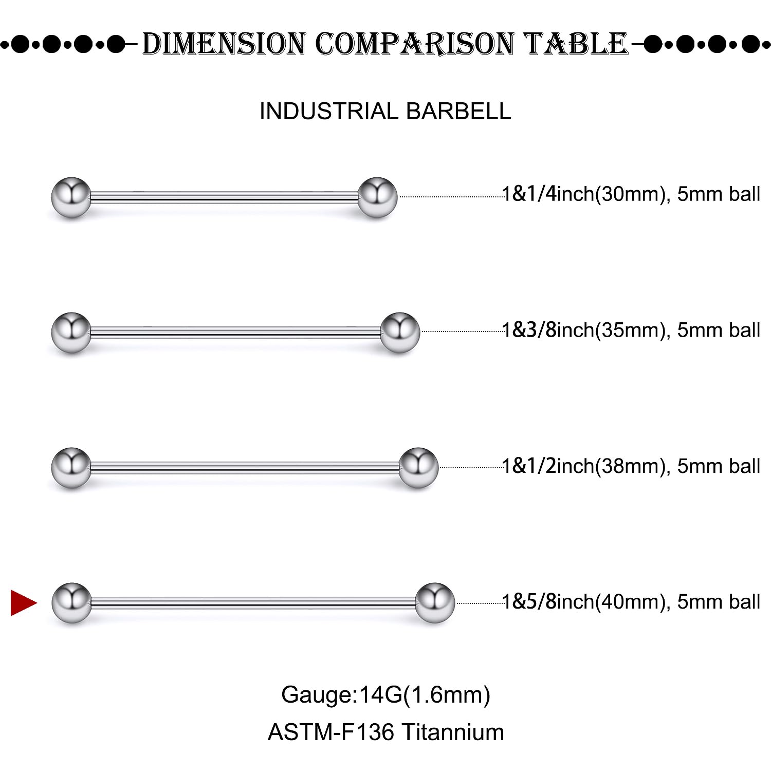 [Style]: 1 pairs Titanium Internally Threaded Straight Industrial Barbells Earring Piercing Jewelry.