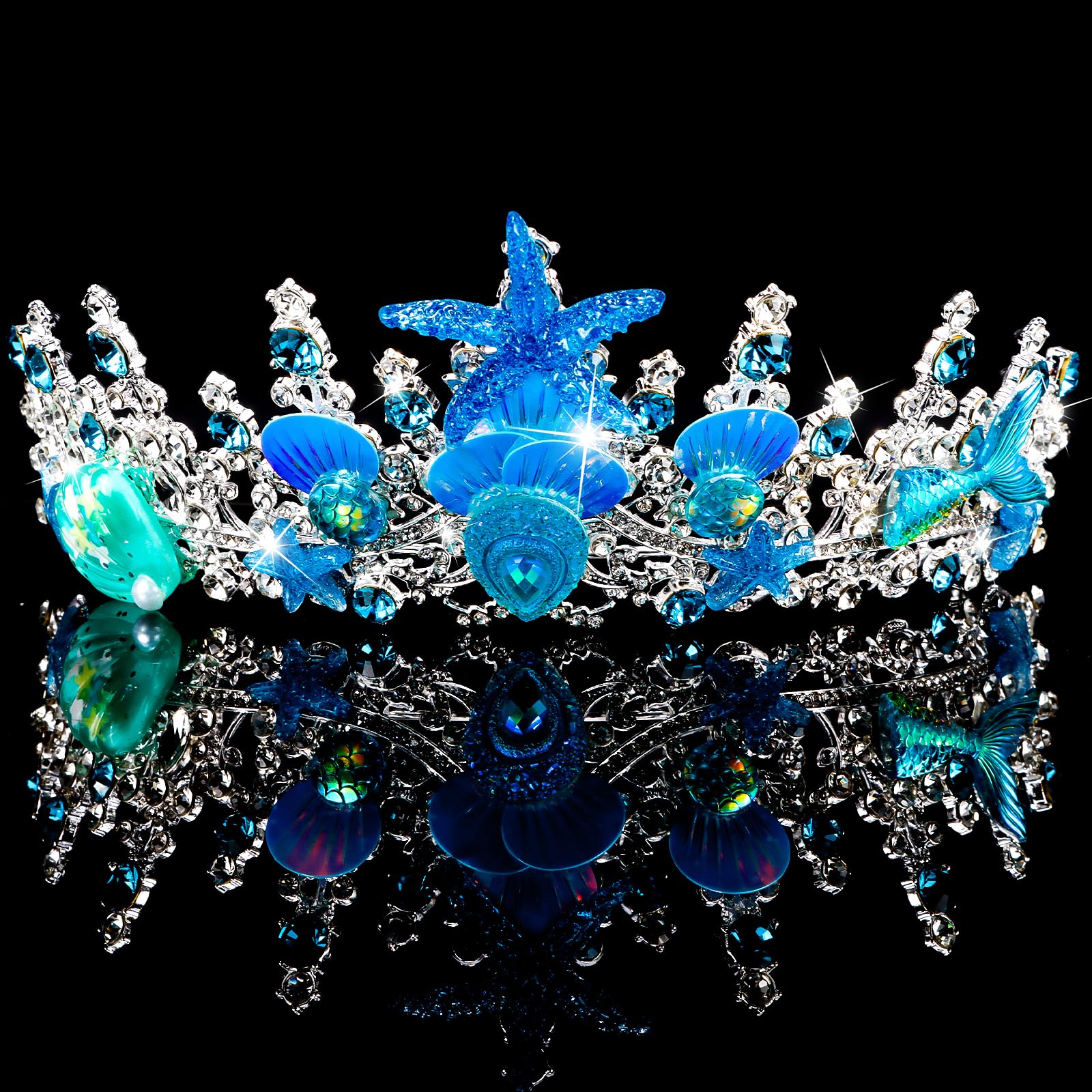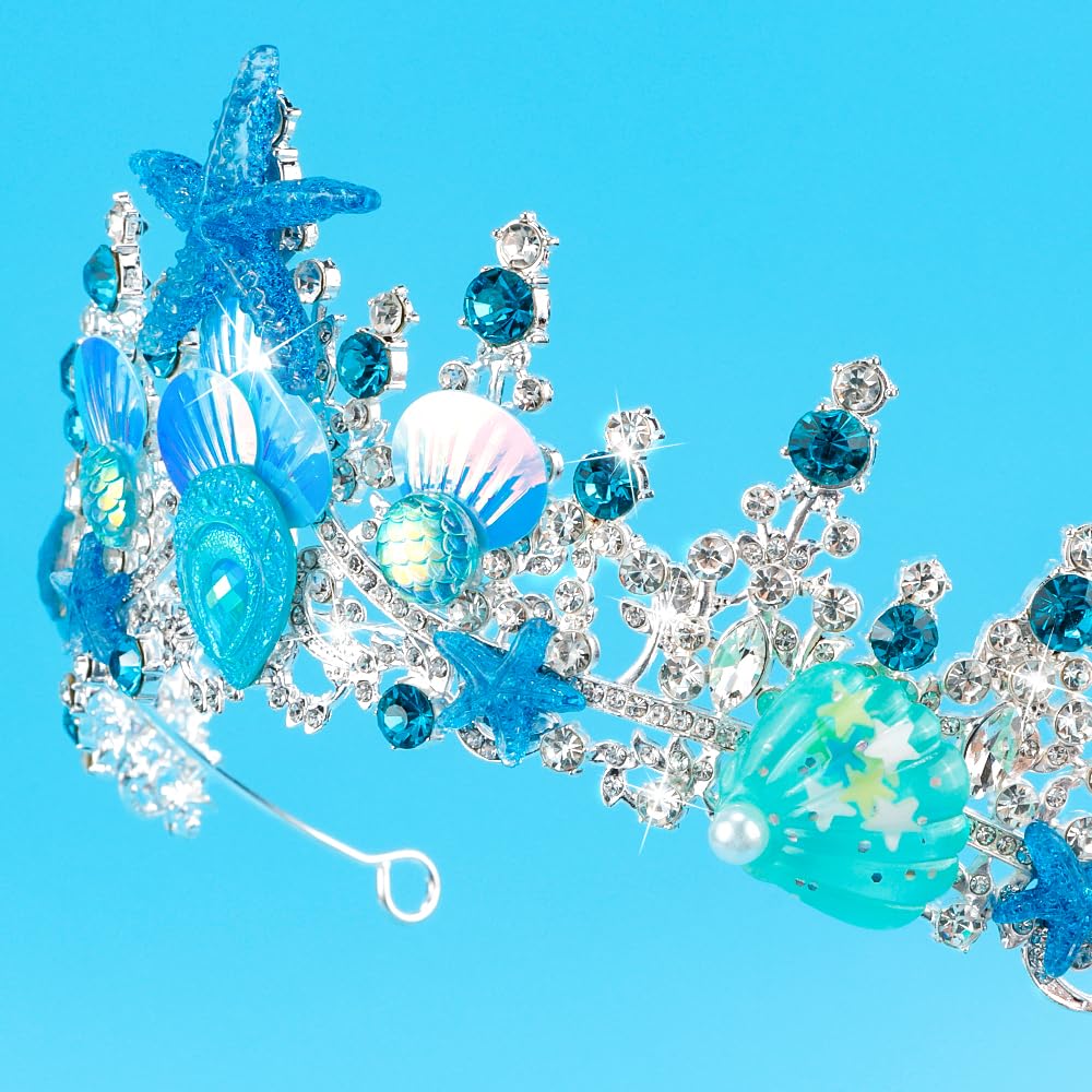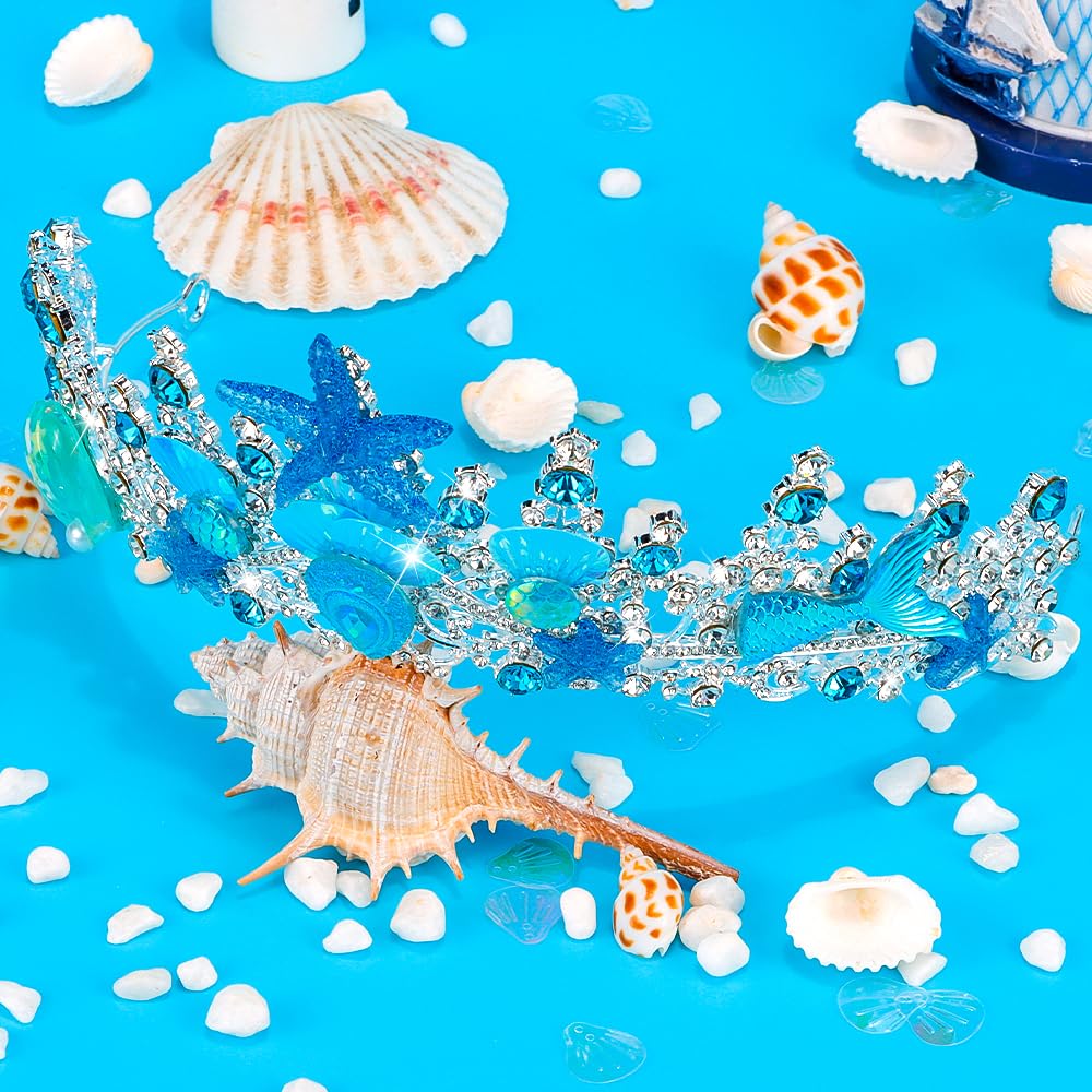 Exquisite Design: This mermaid crown features a unique and delicate design, seamlessly blending ocean elements with the regal elegance of a crown. Embellished with intricate shells, starfish and scales, it transforms the wearer into a beautiful mermaid princess of the deep sea.