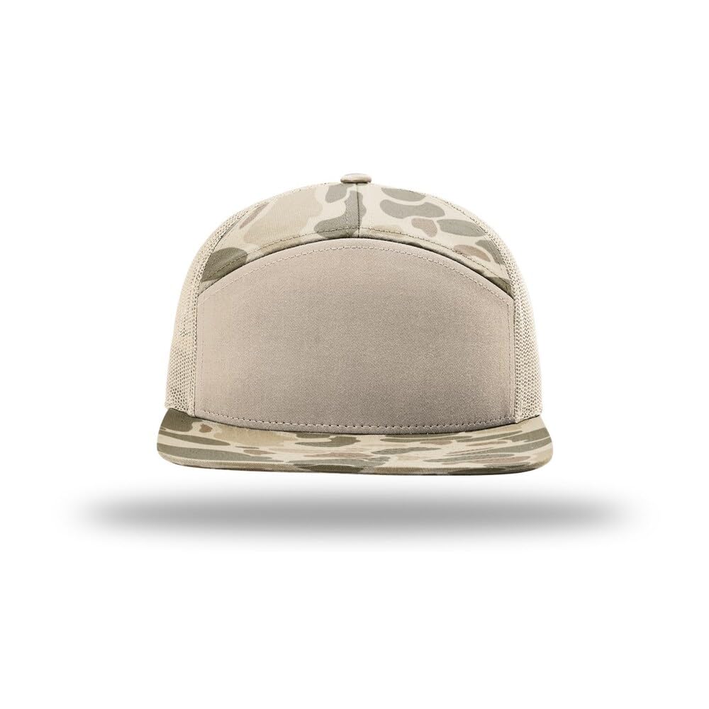 Modern 7-Panel Design with Hi Pro Profile & Flat Bill: Combines contemporary fashion aesthetics with practical construction-perfect for streetwear brands, promotional merchandise, or stylish outdoor gear.