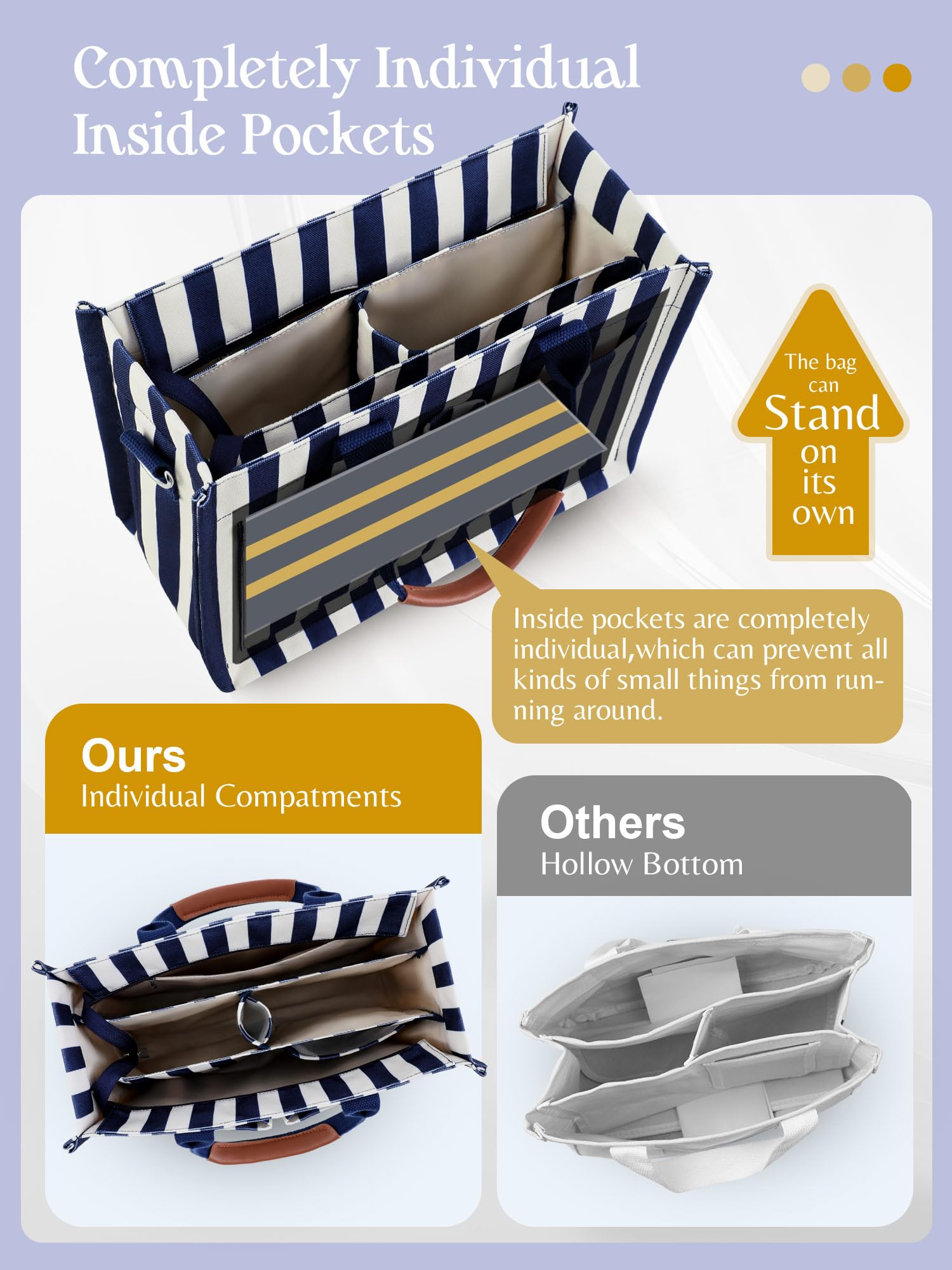 Multi Individual Pockets: the tote purse features multi independent compartments, making it easy to organize your personal items. Besides, all dividers are sewn to the bottom to ensure you stay organized all day without worrying about items rolling around.