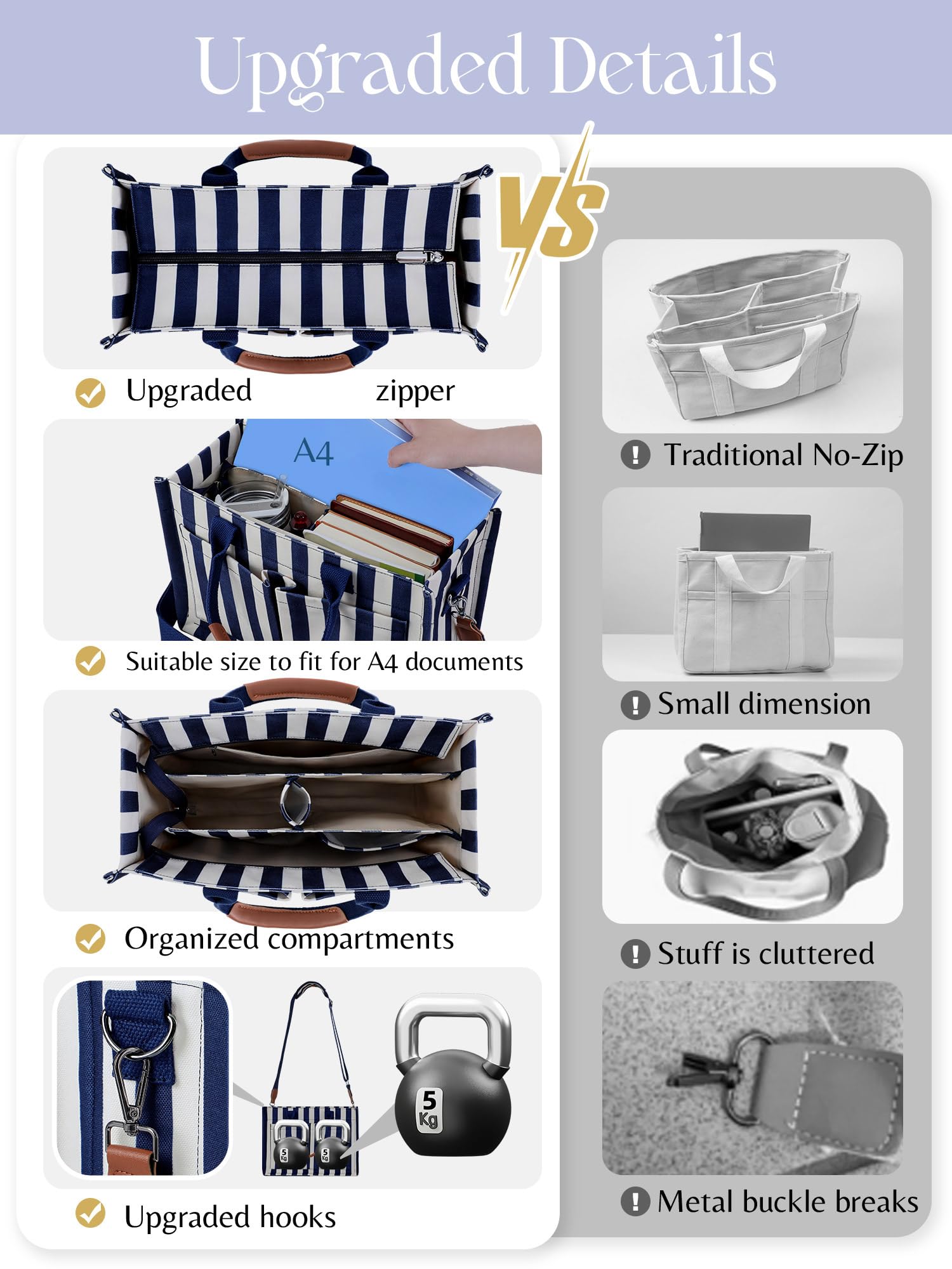 Top Zipper Closure & Thick Bottom Support: the work tote bag is designed with top zipper to keep your belongings safe and secure. Besides, the reinforced thick bottom provides stability and can easily hold heavier items without losing its shape.